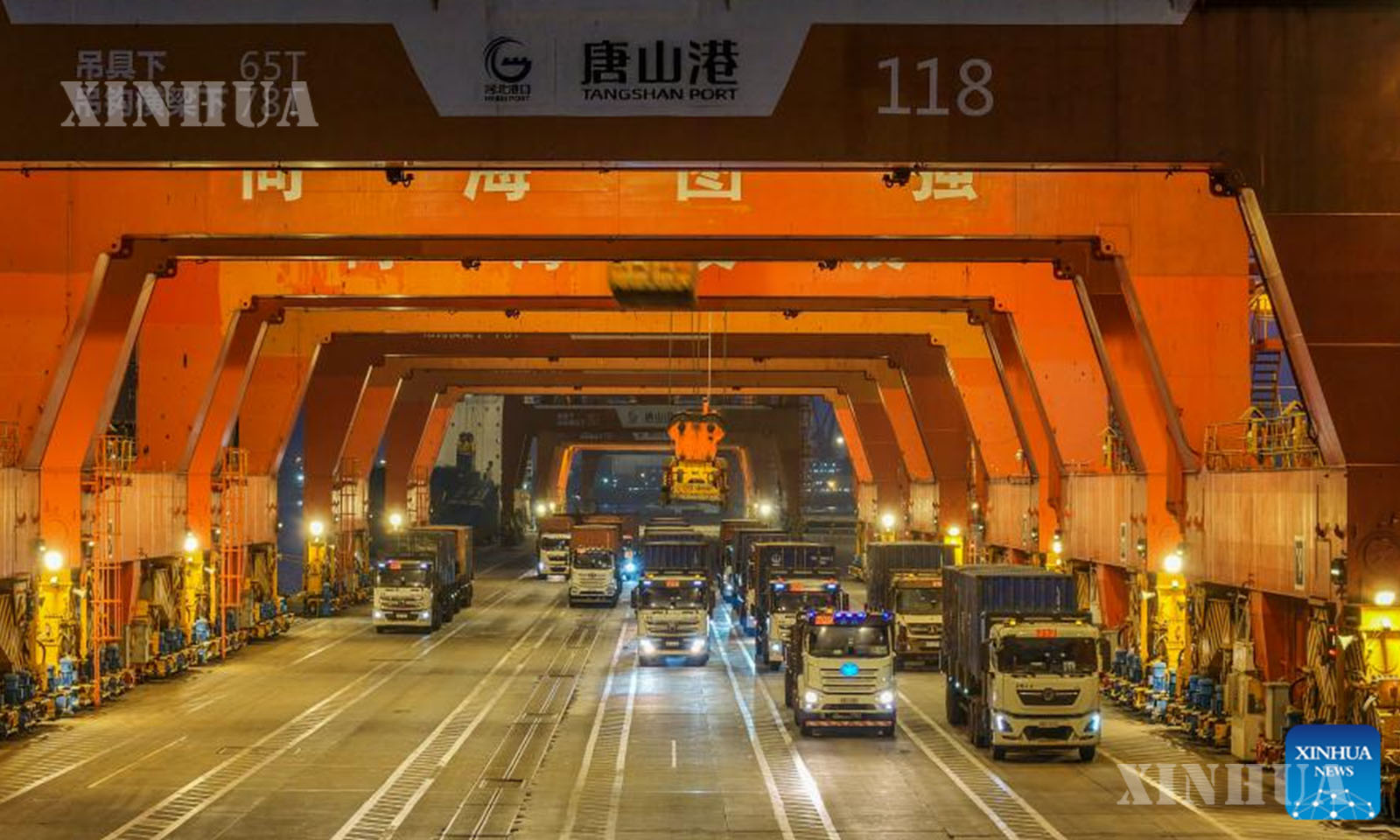 တရုတ်နိုင်ငံ မြောက်ပိုင်း ဟဲပေပြည်နယ် ထန်ဆန်းမြို့ရှိ ထန်းဆန်းဆိပ်ကမ်း၌ ကုန်တင်သေတ္တာများ တင်ဆောင်ထားသည့် ထရပ်ကားကို ၂၀၂၆ ခုနှစ် ဇန်နဝါရီ ၂ ရက်က တွေ့ရစဉ် (ဆင်ဟွာ)