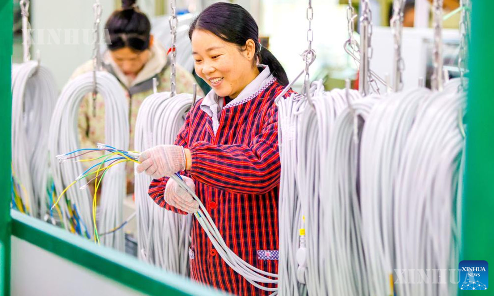 တရုတ်နိုင်ငံ အရှေ့ပိုင်း ကျန်းရှီးပြည်နယ် ကျီအန်းမြို့ရှိ စက်ရုံတစ်ရုံ၌ လျှပ်စစ်မီးကြိုးများ ပြုလုပ်နေသည့် အလုပ်သမားများကို ၂၀၂၆ ခုနှစ် ဇန်နဝါရီ ၂ ရက်က တွေ့ရစဉ် (ဆင်ဟွာ)