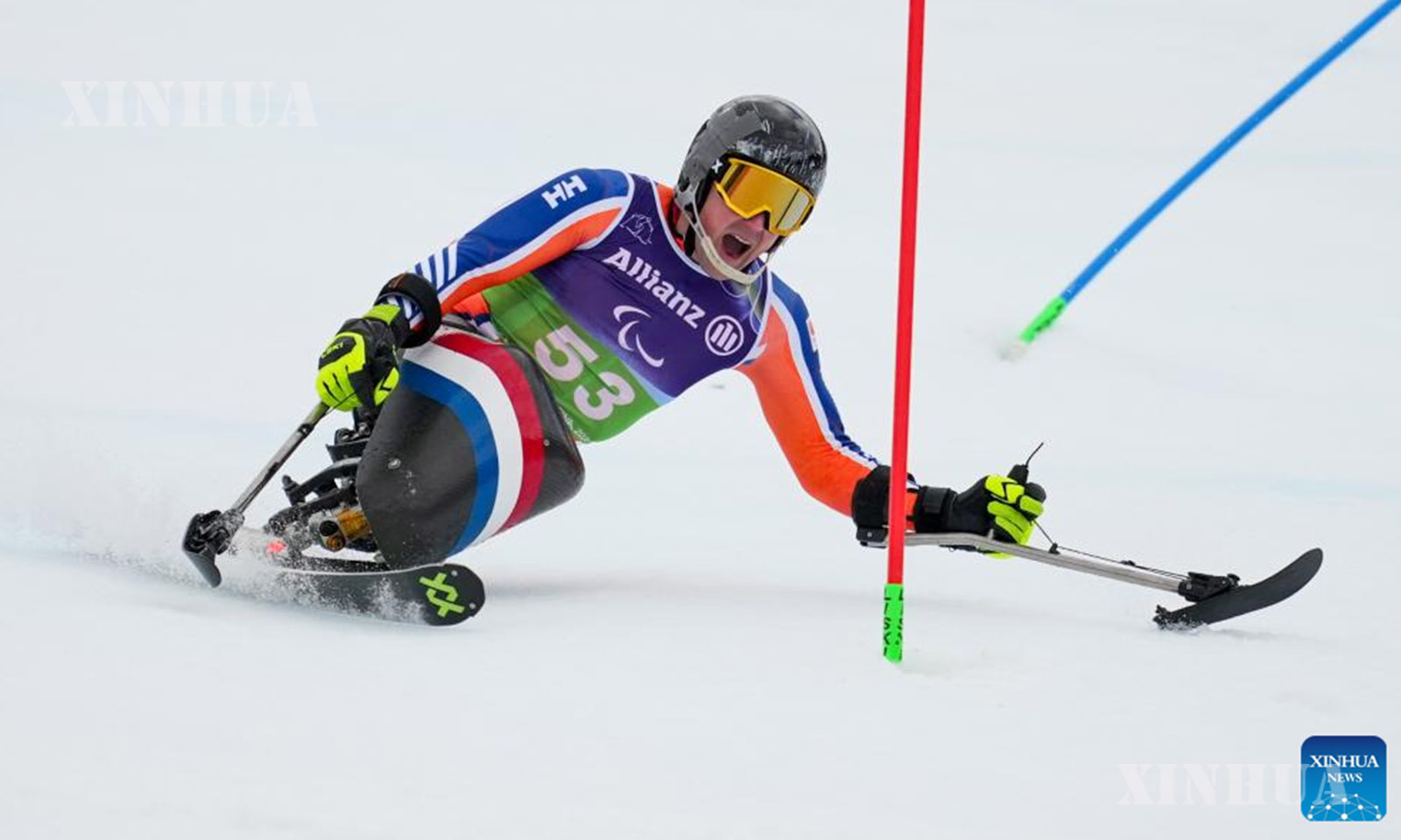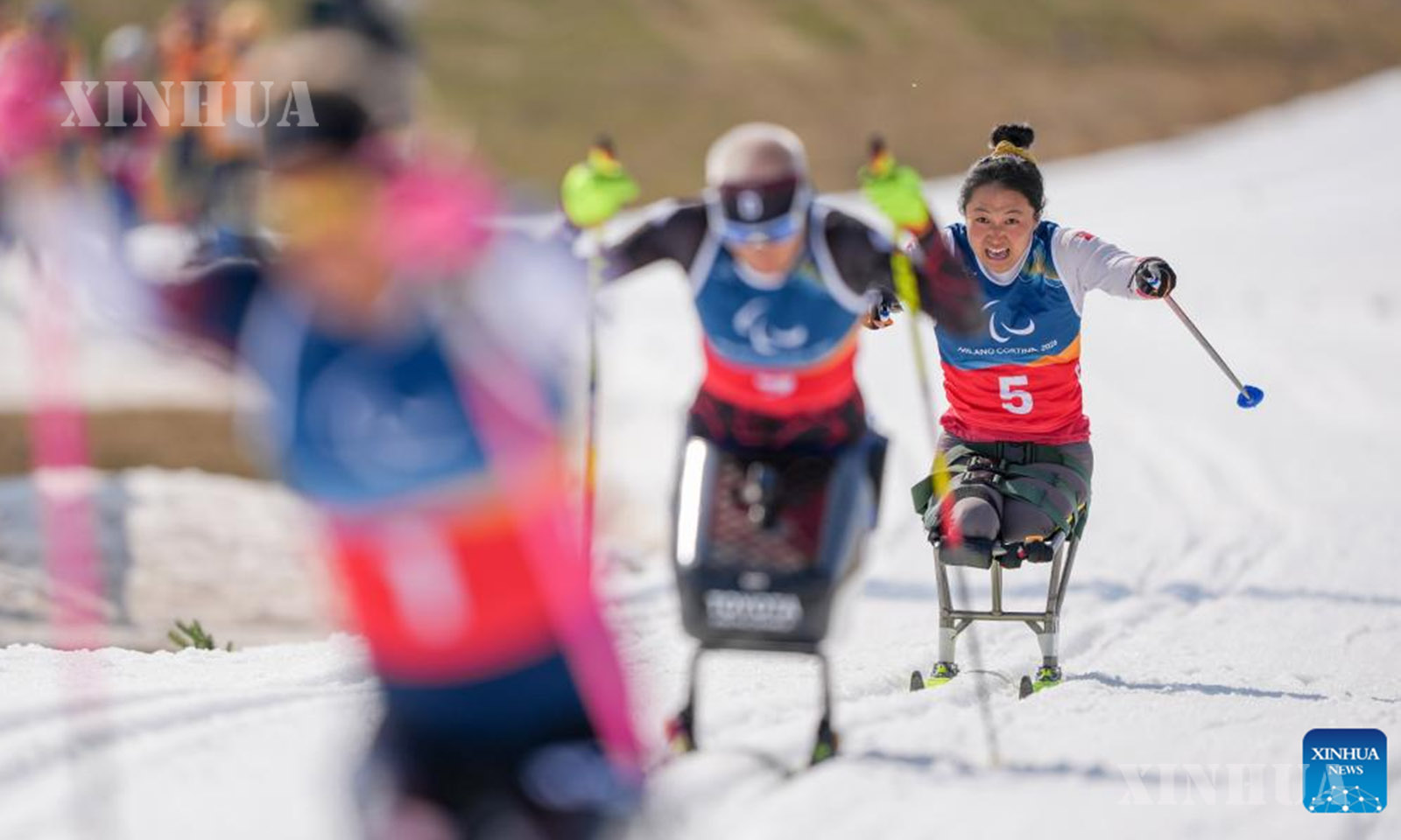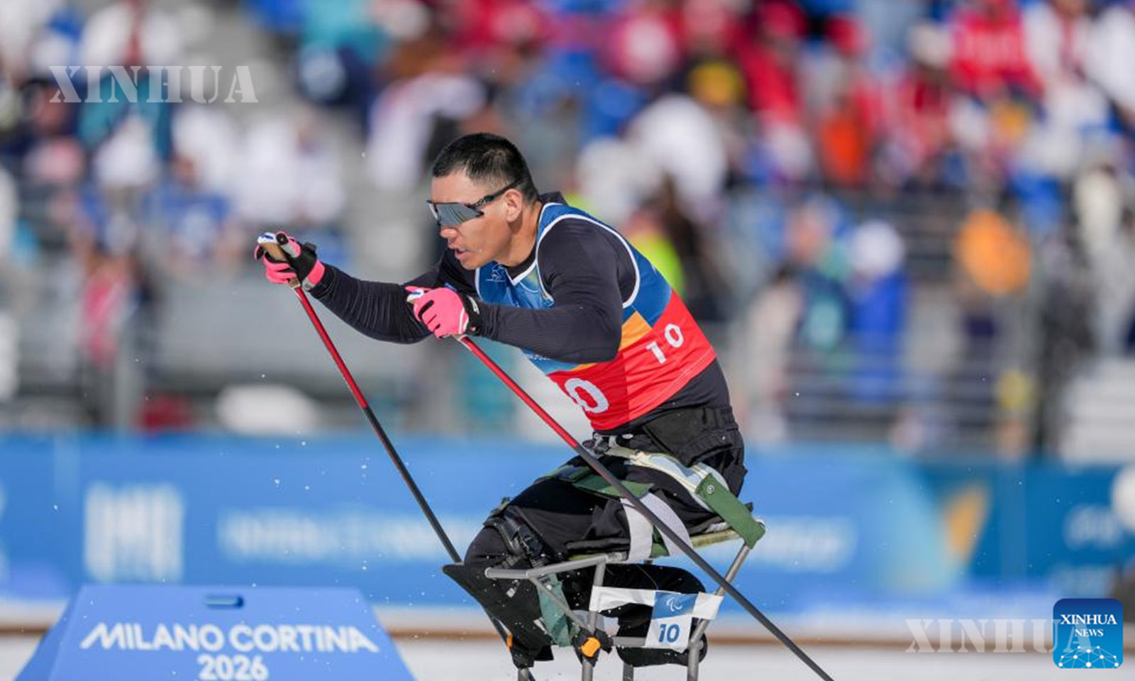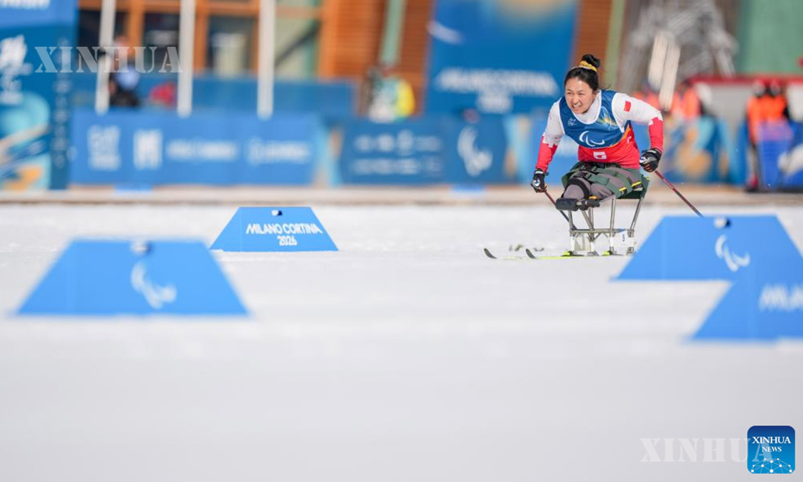အီတလီနိုင်ငံ တက်ဆီရိုမြို့တွင် ကျင်းပသည့် ၂၀၂၆ ခုနှစ် မီလန်ကော်တီနာ မသန်စွမ်းအိုလံပစ် ဆောင်းရာသီအားကစားပြိုင်ပွဲ၌ နိုင်ငံဖြတ်ကျော် မသန်စွမ်းနှင်းလျှောစီးခြင်း အမျိုးသား ထိုင်လျက်တာတိုပြေးပွဲ ဆီမီးဖိုင်နယ်ပွဲအတွင်း ယှဉ်ပြိုင်နေသည့် တရုတ်အသင်းမှ လျိုကျစ်ရွှိ ကို ၂၀၂၆ ခုနှစ် မတ် ၁၀ ရက်က တွေ့ရစဉ် (ဆင်ဟွာ)