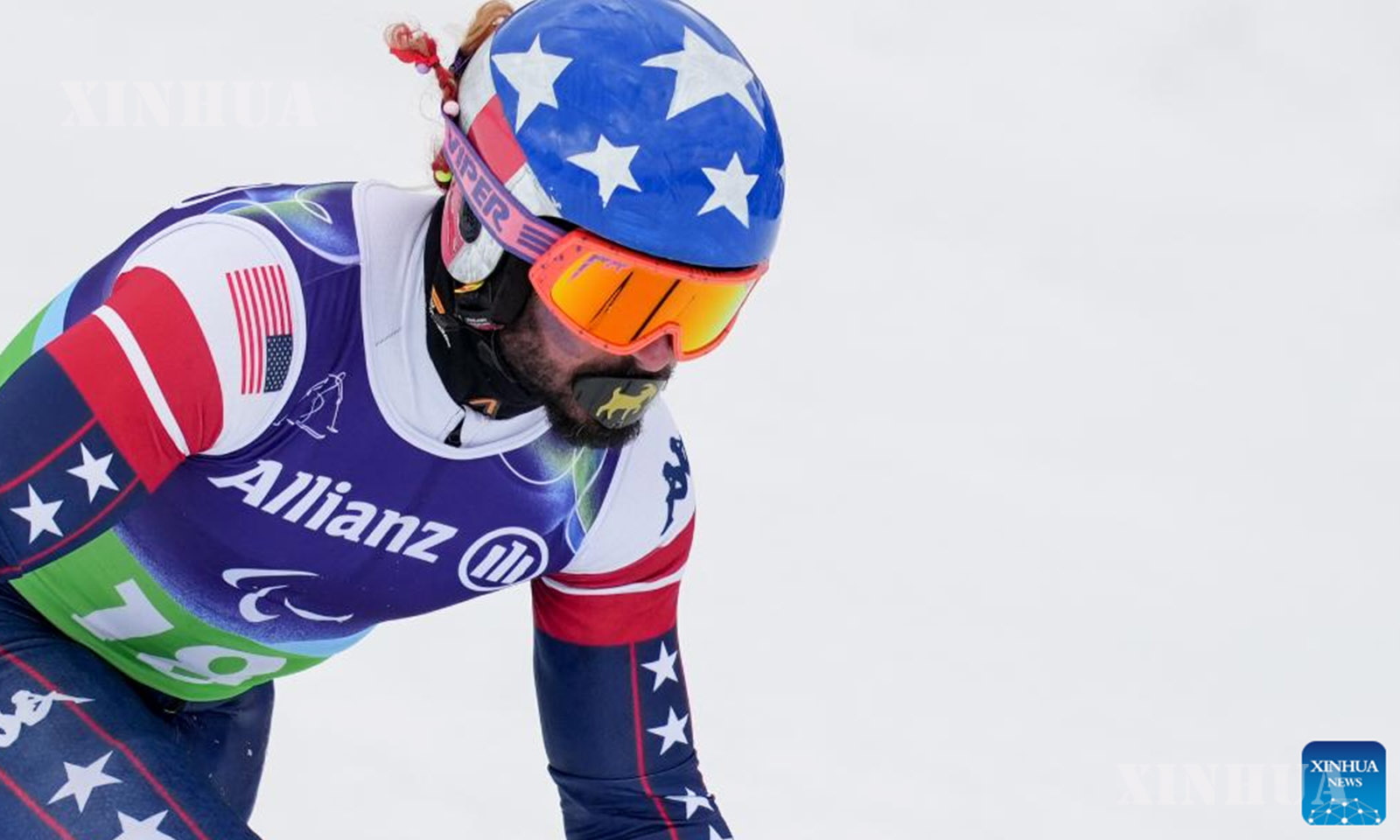 Patrick Halgren of the United States competes during the Para Alpine Skiing Men’s Alpine Combined Standing event at the Milan-Cortina 2026 Paralympic Winter Games in Cortina D’ampezzo, Italy, March 10, 2026. (Xinhua/Wang Kaiyan)