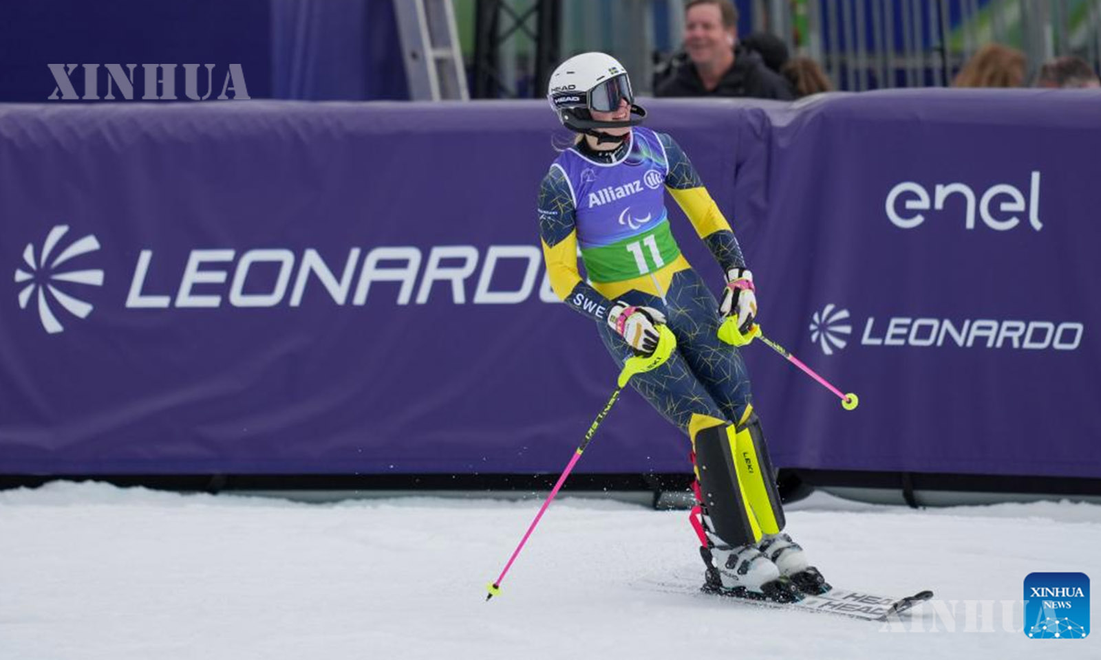 အီတလီနိုင်ငံ ကော်တီနာ ဒီအမ်ပက်ဇိုမြို့တွင် ကျင်းပသည့် ၂၀၂၆ ခုနှစ် မီလန်ကော်တီနာ မသန်စွမ်းအိုလံပစ် ဆောင်းရာသီအားကစားပြိုင်ပွဲ၌ မသန်စွမ်း Alpine နှင်းလျှောစီးခြင်း အမျိုးသမီး Combined Standing ပြိုင်ပွဲအား အနိုင်ရရှိပြီးနောက် အောင်ပွဲခံနေသည့် ဆွီဒင်အသင်းမှ Ebba Aarsjoe ကို ၂၀၂၆ ခုနှစ် မတ် ၁၀ ရက်က တွေ့ရစဉ် (ဆင်ဟွာ)