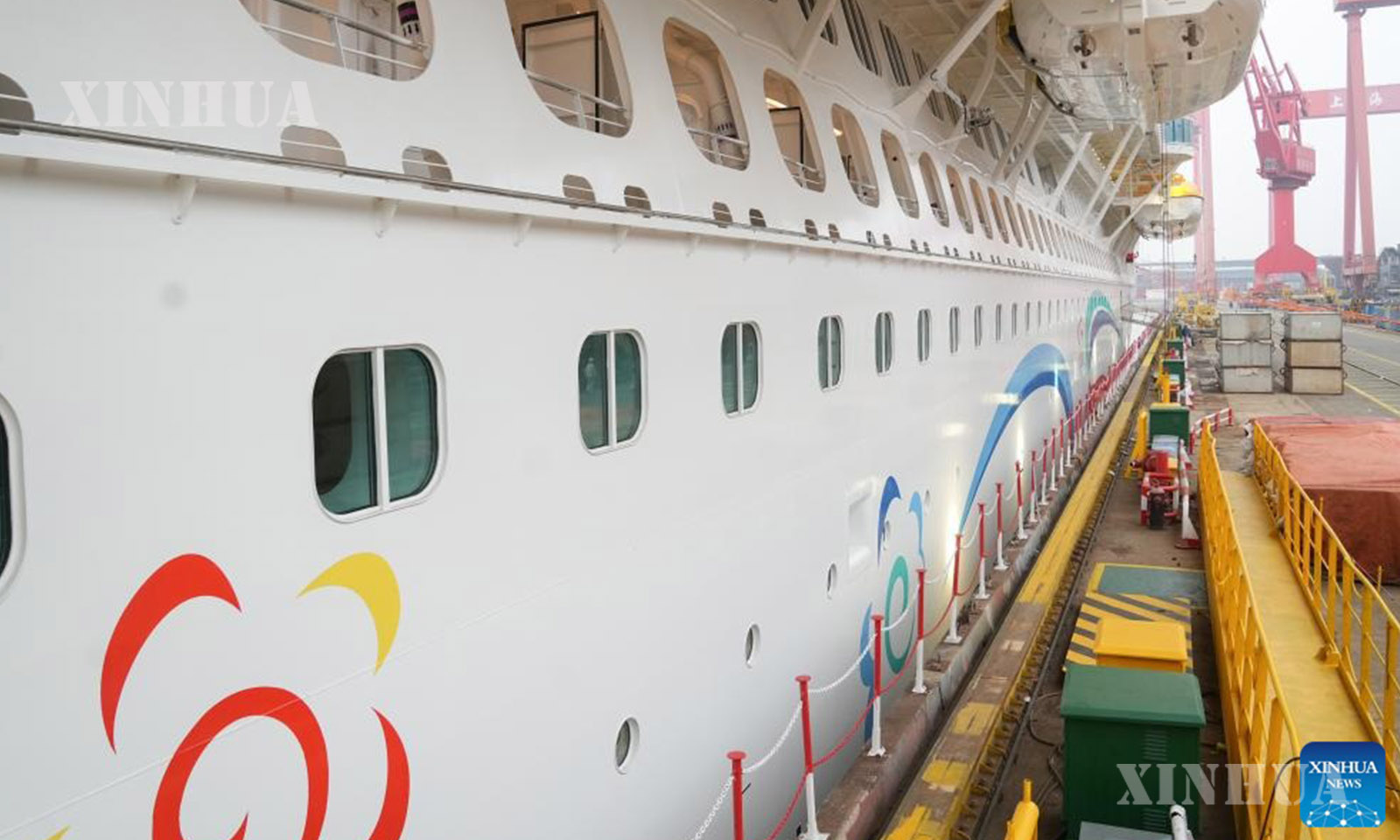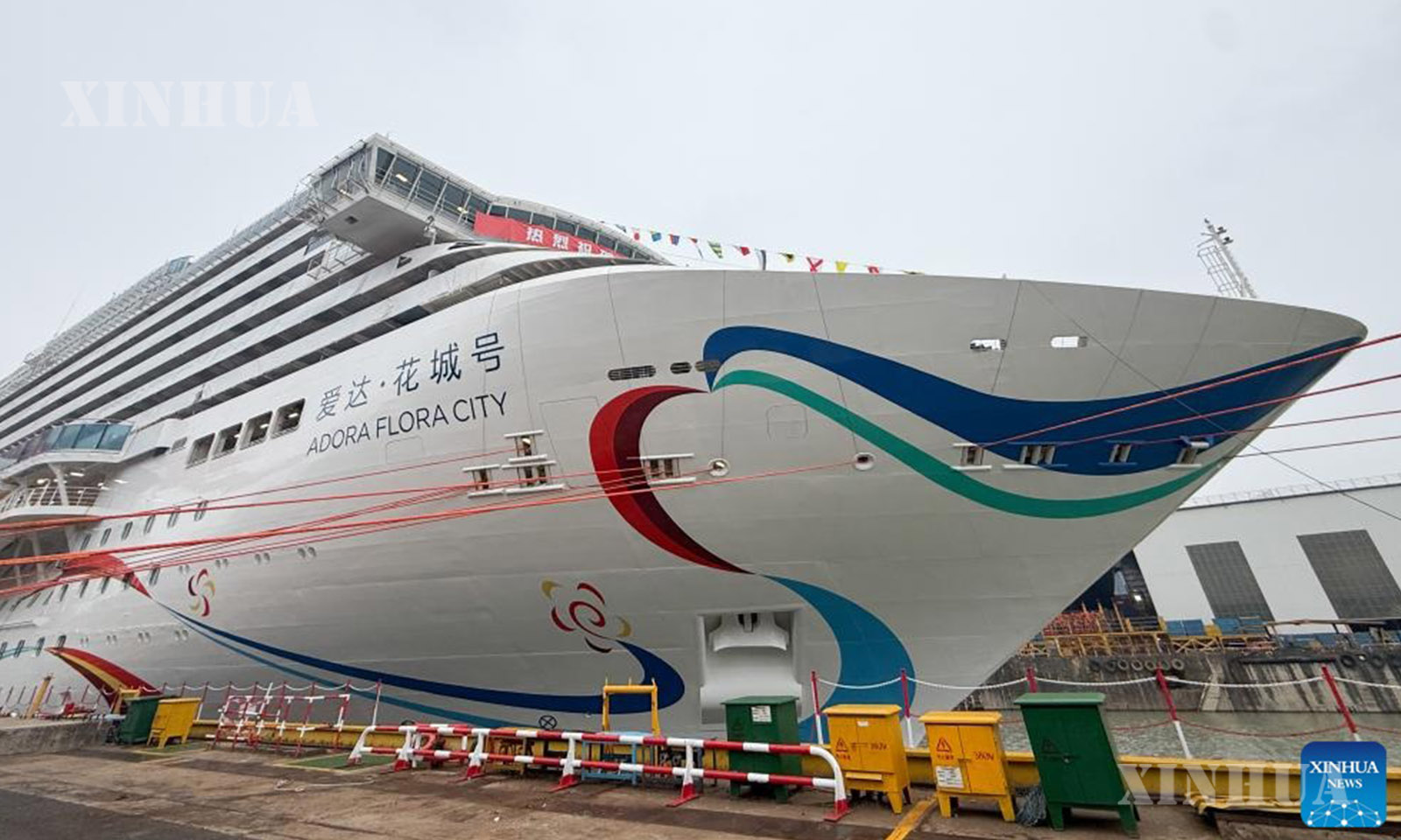 The large cruise ship, Adora Flora City, is scheduled to undock on March 20 for the next test phase of dockside mooring, and sea trials are scheduled for late May, said the shipbuilder.