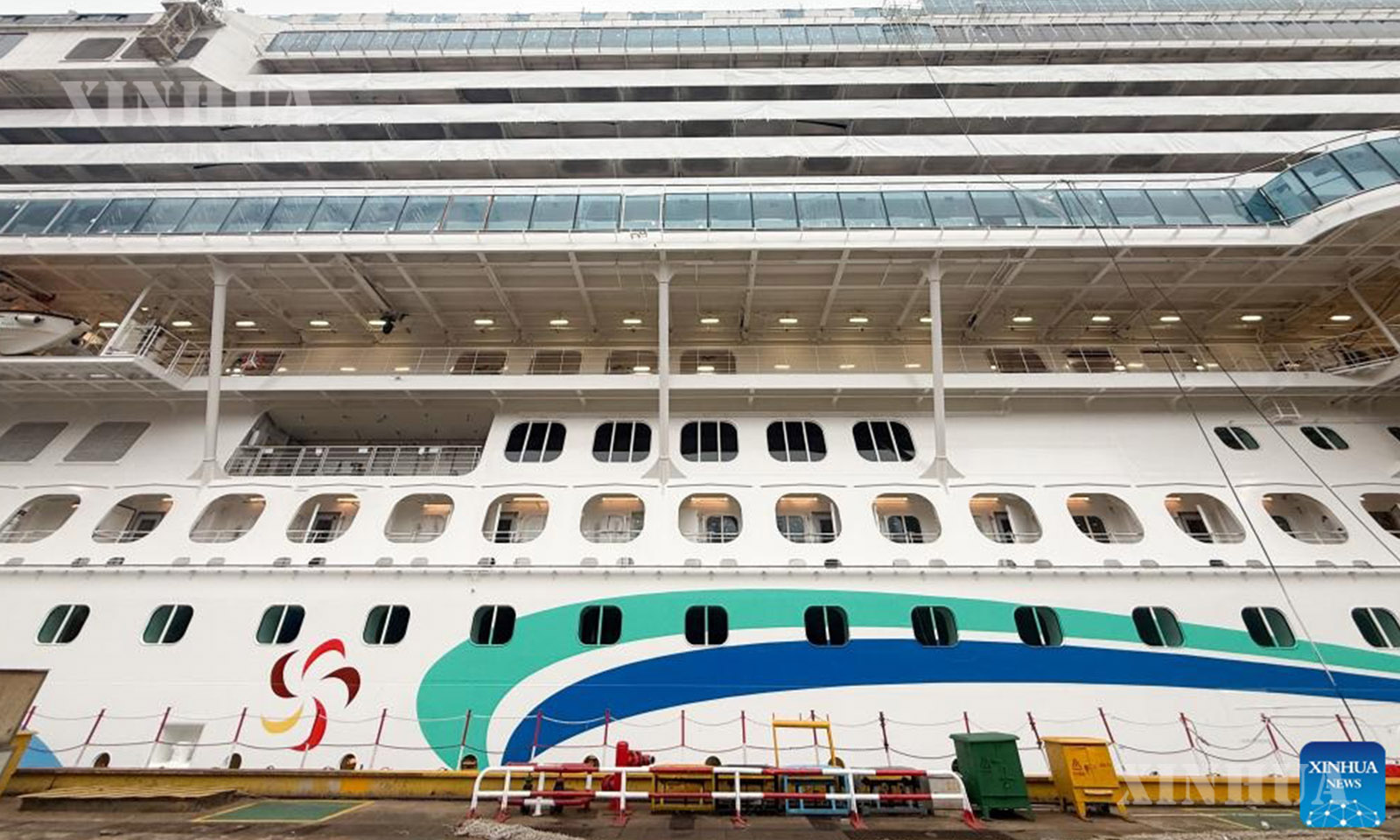 Photo 2: This photo taken on March 16, 2026 shows a view of the large cruise ship “Adora Flora City” in Shanghai, east China. (Xinhua/Ding Ting)