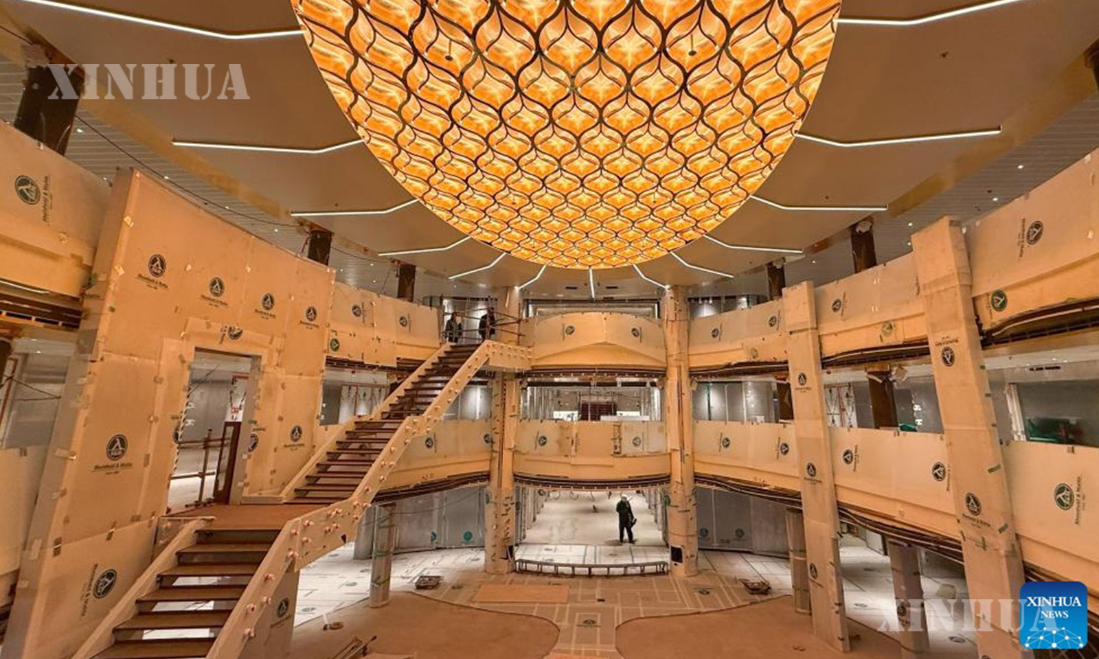 Photo 3: This photo, taken on March 16, 2026 shows an interior view of the large cruise ship “Adora Flora City” in Shanghai, east China. (Xinhua/Ding Ting)