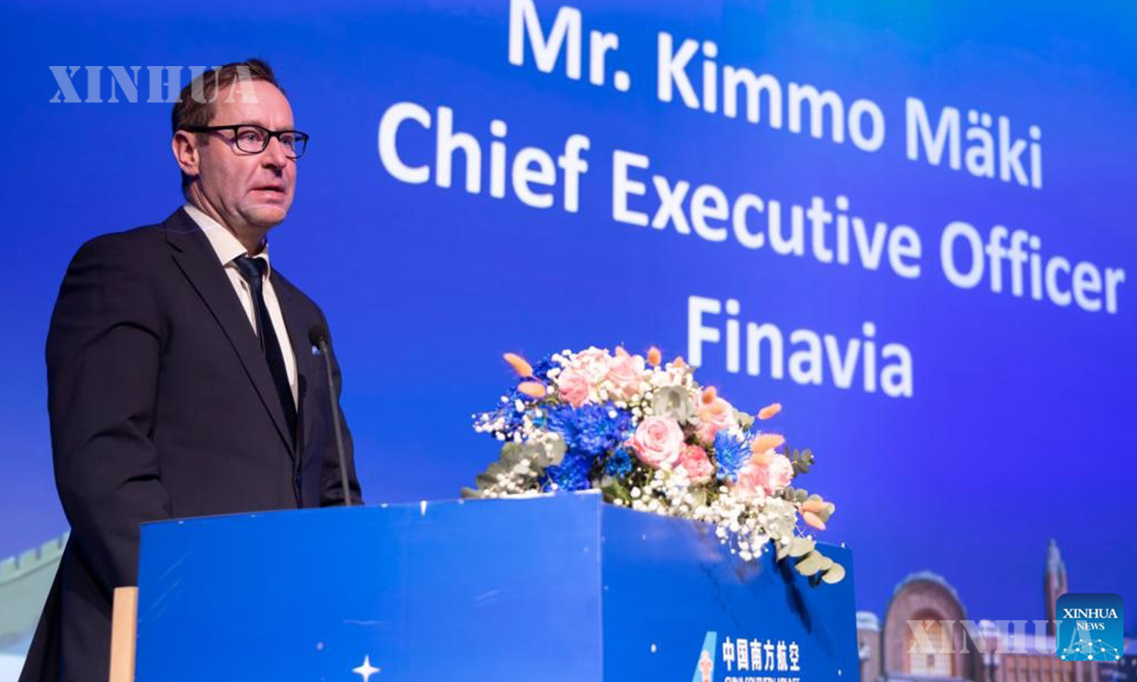 ပေကျင်း-ဟယ်ဆင်ကီ တိုက်ရိုက်လမ်းကြောင်းသစ်အတွက် China Southern လေကြောင်းလိုင်းမှ ဖင်လန်နိုင်ငံ မြို့တော်ဟယ်ဆင်ကီတွင် ကျင်းပသည့် အရောင်းမြှင့်တင်ရေးအခမ်းအနား၌ Finavia ကုမ္ပဏီ၏ စီအီးအို Kimmo Maki က အမှတ်တရစကားပြောကြားနေသည်ကို ၂၀၂၆ ခုနှစ် မတ် ၃၀ ရက်က တွေ့ရစဉ် (ဆင်ဟွာ)