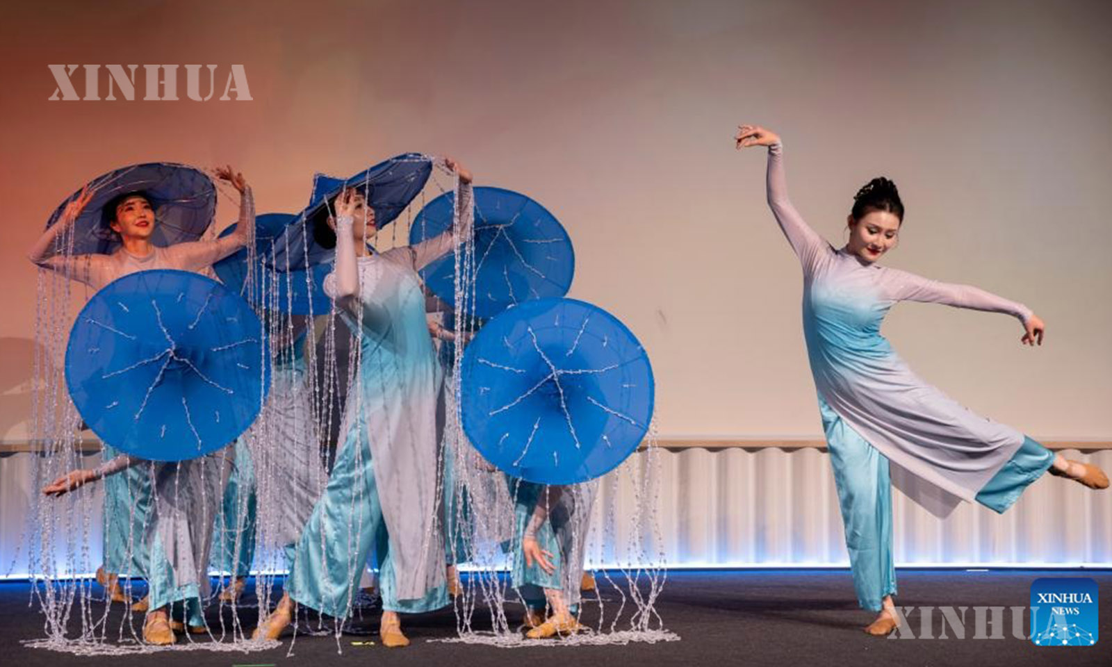 Actresses from China perform dance at a promotion event hosted by China Southern Airlines for the new Beijing-Helsinki direct route in Helsinki, Finland, March 30, 2026. (Photo by Matti Matikainen/Xinhua)