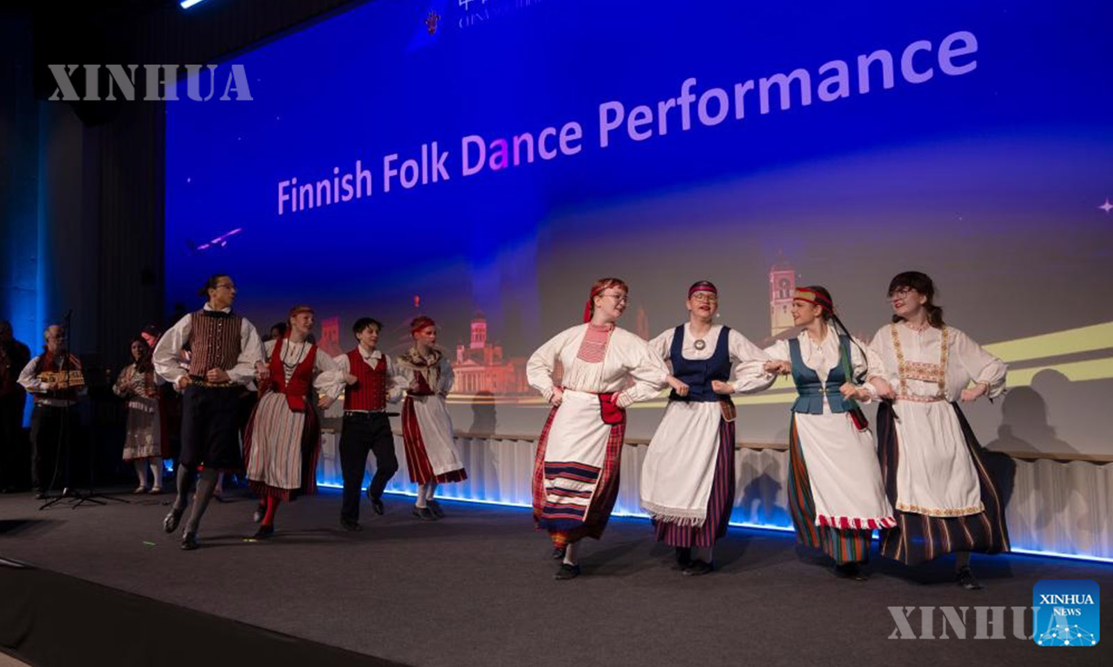 A Finnish folk dance performance is staged at a promotion event hosted by China Southern Airlines for the new Beijing-Helsinki direct route in Helsinki, Finland, March 30, 2026. (Photo by Matti Matikainen/Xinhua)
