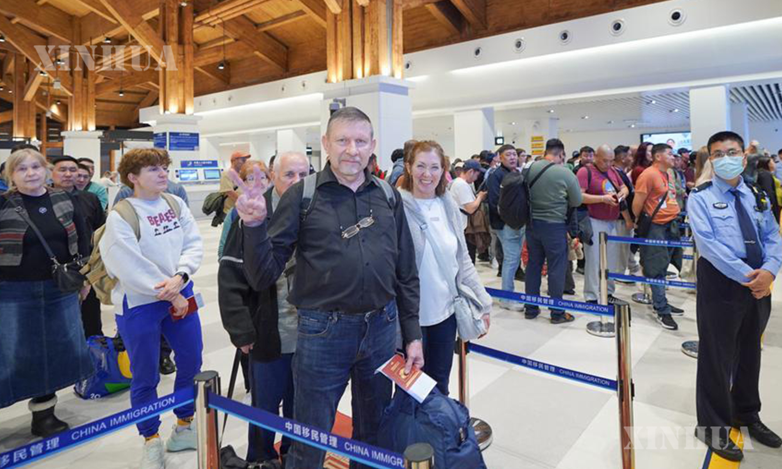 Foreign travelers wait for border inspection procedures at Sanya Phoenix International Airport in Sanya, south China’s Hainan Province, Jan. 15, 2026. (Xinhua)