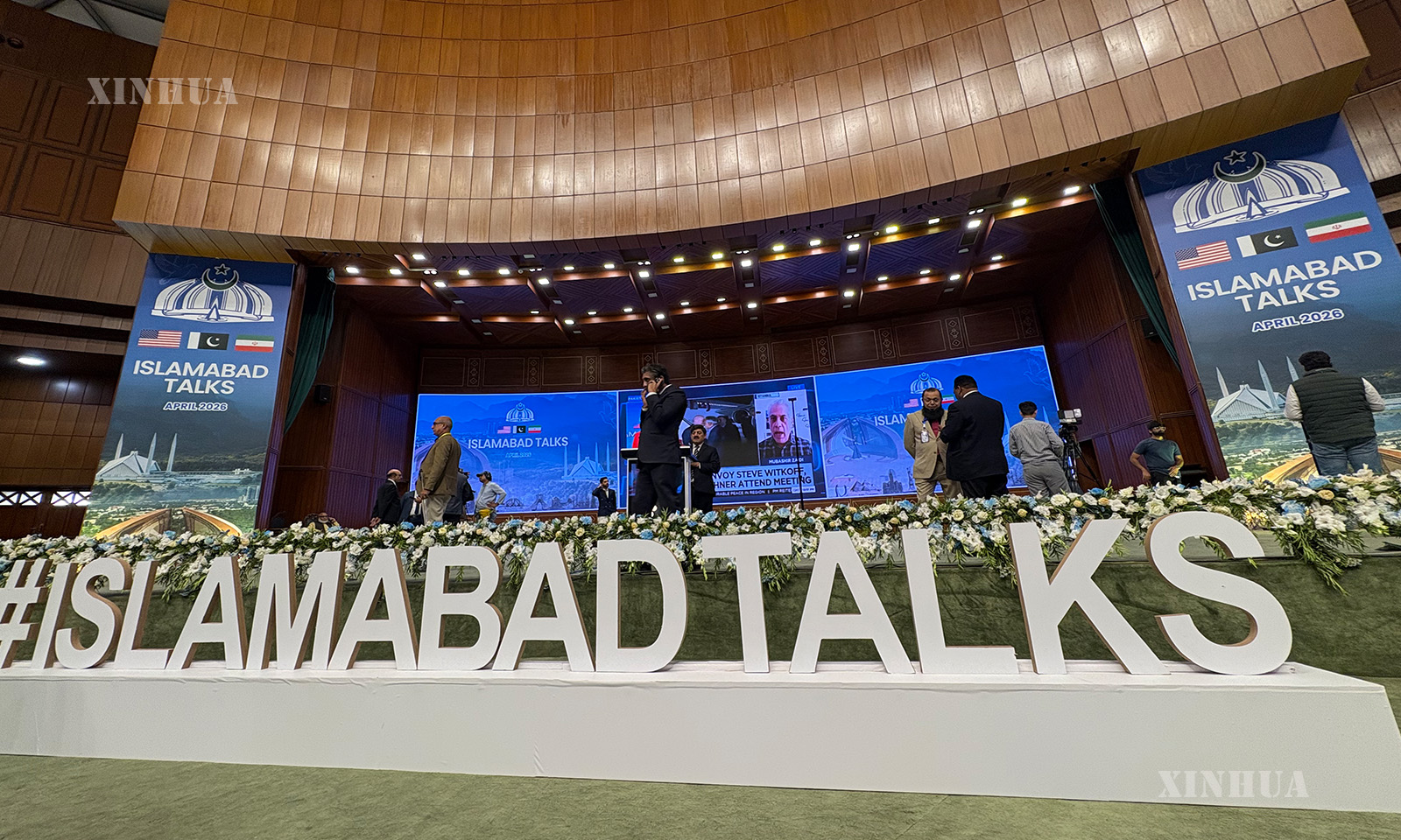 April 13 (Xinhua) — The U.S.-Iran talks held in Pakistan are a step towards the deescalation of the situation, a Chinese foreign ministry spokesperson said on Monday in response to a related query.”China hopes that all relevant parties will follow the temporary ceasefire arrangement and stay committed to political and diplomatic channels in settling disputes, so as to avoid flare-ups of fighting again and create conditions for the early restoration of peace and tranquility in the Gulf region,” spokesperson Guo Jiakun said at a daily press briefing. English CaptionThis photo taken on April 11, 2026 shows an interior view of the press center for the talks between the United States and Iran in Islamabad, Pakistan. (Xinhua/Wang Shen)