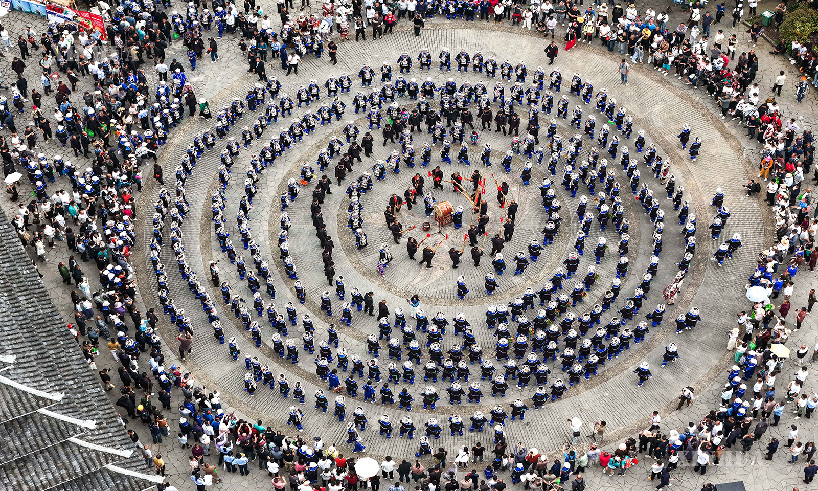 တရုတ်နိုင်ငံ ကွေ့ကျိုးပြည်နယ် ကျန့်ယွမ်ခရိုင် ပေါက်ကျင်း တုန့်လူမျိုးရွာ၌ “စန်းယွဲစန်း” ပွဲတော် တိုင်းရင်းသားဓလေ့ အခမ်းအနားတွင် စည်းလုံးခြင်းအက ကခုန်နေသည်ကို ၂၀၂၆ ခုနှစ် ဧပြီ ၁၉ ရက်က တွေ့ရစဉ် (ဆင်ဟွာ)