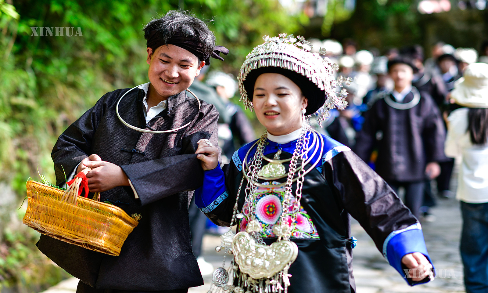 တရုတ်နိုင်ငံ ကွေ့ကျိုးပြည်နယ် ကျန့်ယွမ်ခရိုင် ပေါက်ကျင်း တုန့်လူမျိုးရွာ၌ “စန်းယွဲစန်း” ပွဲတော် တိုင်းရင်းသားဓလေ့ အခမ်းအနား တက်ရောက်နေသည့် တုန့်လူမျိုးပြည်သူက ပွဲတော်အချိန်အခါ ဝတ်စုံများ ဆင်ယင်နေသည်ကို ၂၀၂၆ ခုနှစ် ဧပြီ ၁၉ ရက်က တွေ့ရစဉ် (ဆင်ဟွာ)