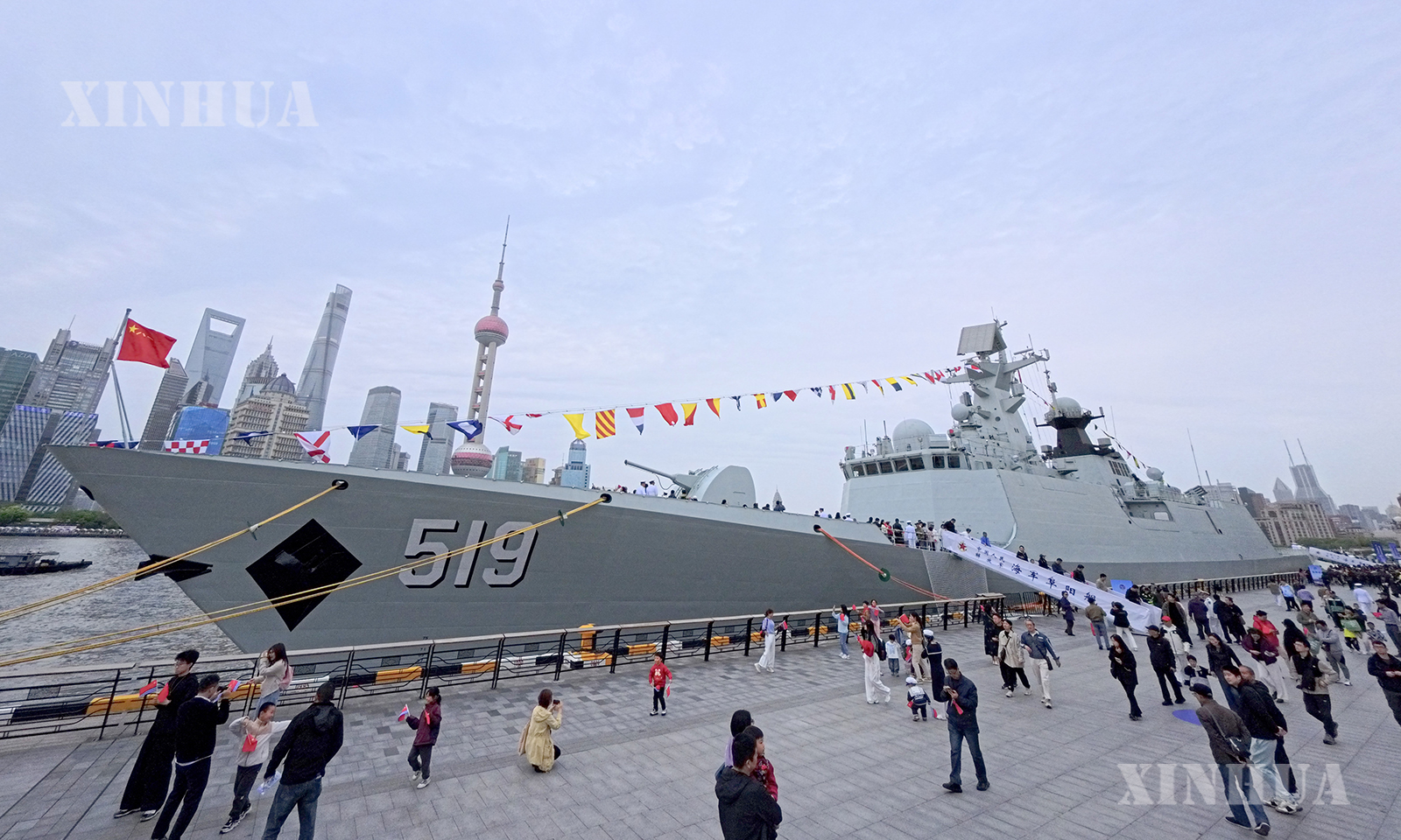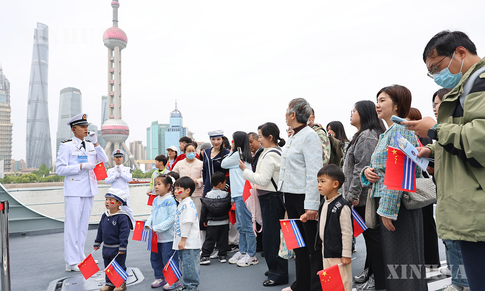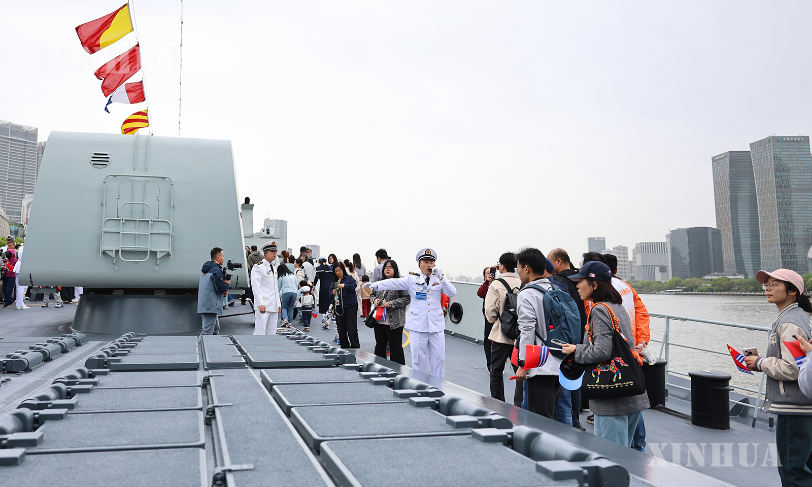 People visit Chinese People’s Liberation Army (PLA) Navy ship Fuyang during an open-ship event in east China’s Shanghai, April 21, 2026. (Xinhua/Fang Zhe)