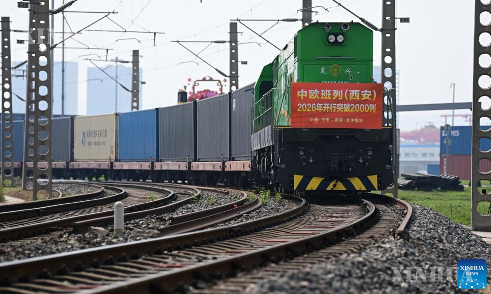ရှီးအန်း အပြည်ပြည်ဆိုင်ရာ ဆိပ်ကမ်းဘူတာရုံက ၂၀၂၆ ခုနှစ်တွင် တရုတ်-ဥရောပ ကုန်တင်ရထားခရီးစဉ် ၂,၀၀၀ ကျော်ကို ကိုင်တွယ်ဆောင်ရွက်