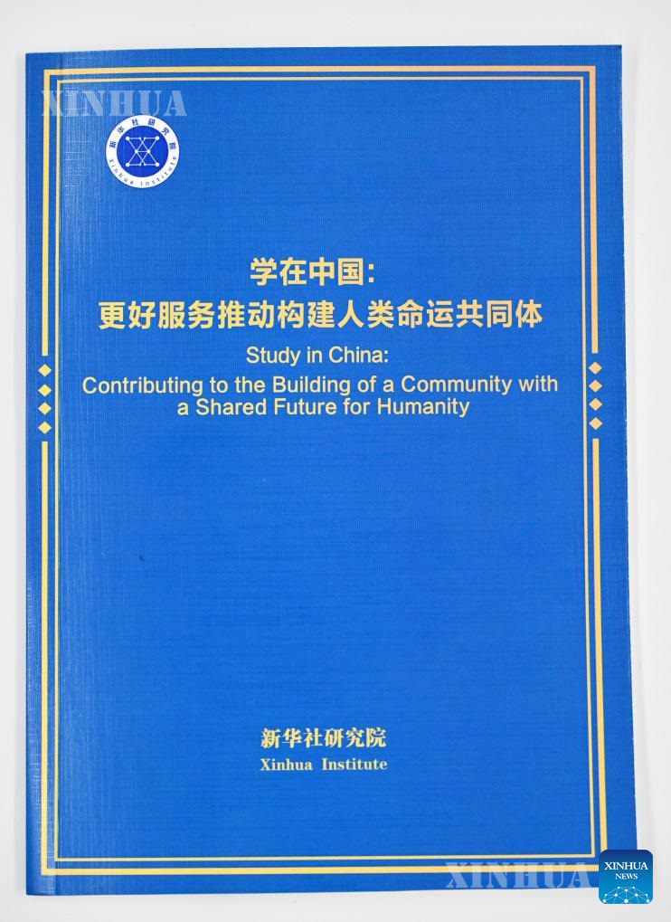 Photo: This photo shows a copy of the think tank report titled “Study in China: Contributing to the Building of a Community with a Shared Future for Humanity.” (Xinhua/Sun Ruibo)