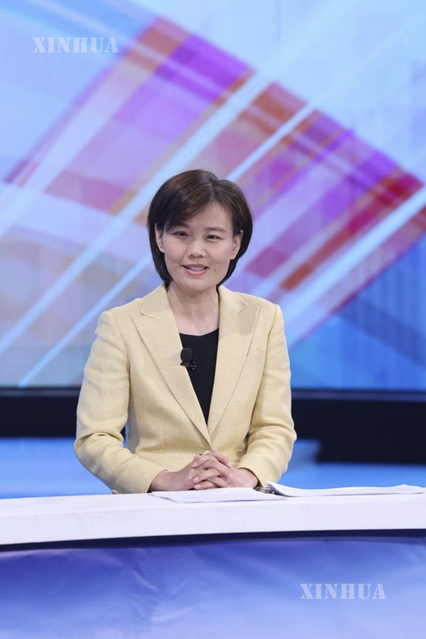 Zhang Xiaoyan, deputy director of China Center for Information Industry Development, speaks at the recording site of the 29th episode of the China Economic Roundtable, an all-media talk show hosted by Xinhua News Agency. (Xinhua/Yin Gang)