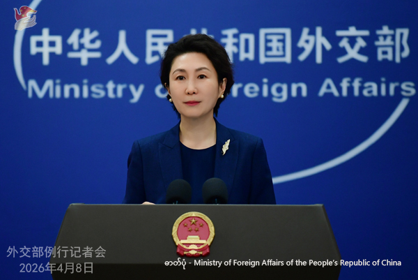 တရုတ်နိုင်ငံခြားရေးဝန်ကြီးဌာနက ၂၀၂၆ ခုနှစ် ဧပြီ ၈ ရက်တွင် ပြုလုပ်သော ပုံမှန်သတင်းစာရှင်းလင်းပွဲ၌ ပြောရေးဆိုခွင့်ရှိသူ မော်နင်က ရှင်းလင်းပြောကြားနေစဉ် (ဓာတ်ပုံ - Ministry of Foreign Affairs of the People’s Republic of China)