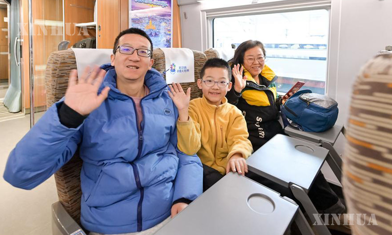 Photo 3: This photo taken on Jan. 4, 2026 shows an interior view of the bullet train No.G1276, the first themed high-speed train of the Harbin Ice-Snow World. (Xinhua/Zhang Tao)