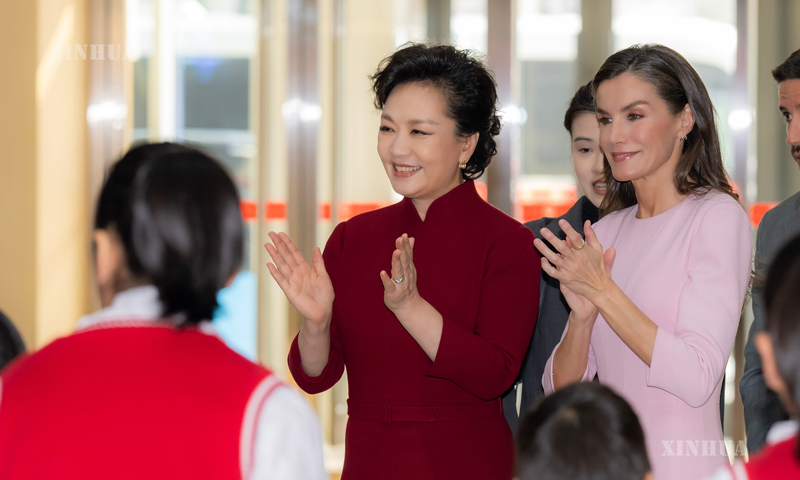 တရုတ်နိုင်ငံ သမ္မတ ရှီကျင့်ဖိန်၏ ဇနီး ဖုန်လိယွမ်သည် ၂၀၂၅ ခုနှစ် နိုဝင်ဘာ ၁၂ ရက် နံနက်ပိုင်းတွင် တရုတ်နိုင်ငံသို့ နိုင်ငံတော်ခရီးစဉ်လာရောက်သော စပိန်နိုင်ငံ ဘုရင် ဖိလစ် ၆ ၏ မိဖုရား လဲတီဇီးယားနှင့်အတူ ပေကျင်းမြို့ မသန်စွမ်းသူများ ဝန်ဆောင်မှု သရုပ်ပြစင်တာအား သွားရောက် လေ့လာကြည့်ရှုခဲ့ရာ ဖုန်လိယွမ်နှင့် လဲတီဇီးယားတို့က လက်မှုအနုပညာထုတ်ကုန်များပြုလုပ်သည့် မသန်စွမ်းသူနှင့် အမှတ်တရဓာတ်ပုံ ရိုက်ကူးနေစဉ် (ဆင်ဟွာ)