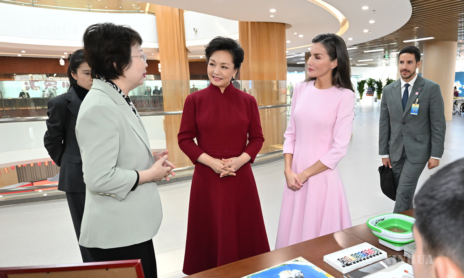 ဖုန်လိယွမ်နှင့် စပိန်နိုင်ငံ မိဖုရား လဲတီဇီးယားတို့ ပေကျင်းမြို့ မသန်စွမ်းသူများ ဝန်ဆောင်မှု သရုပ်ပြစင်တာအား သွားရောက်လေ့လာကြည့်ရှု
