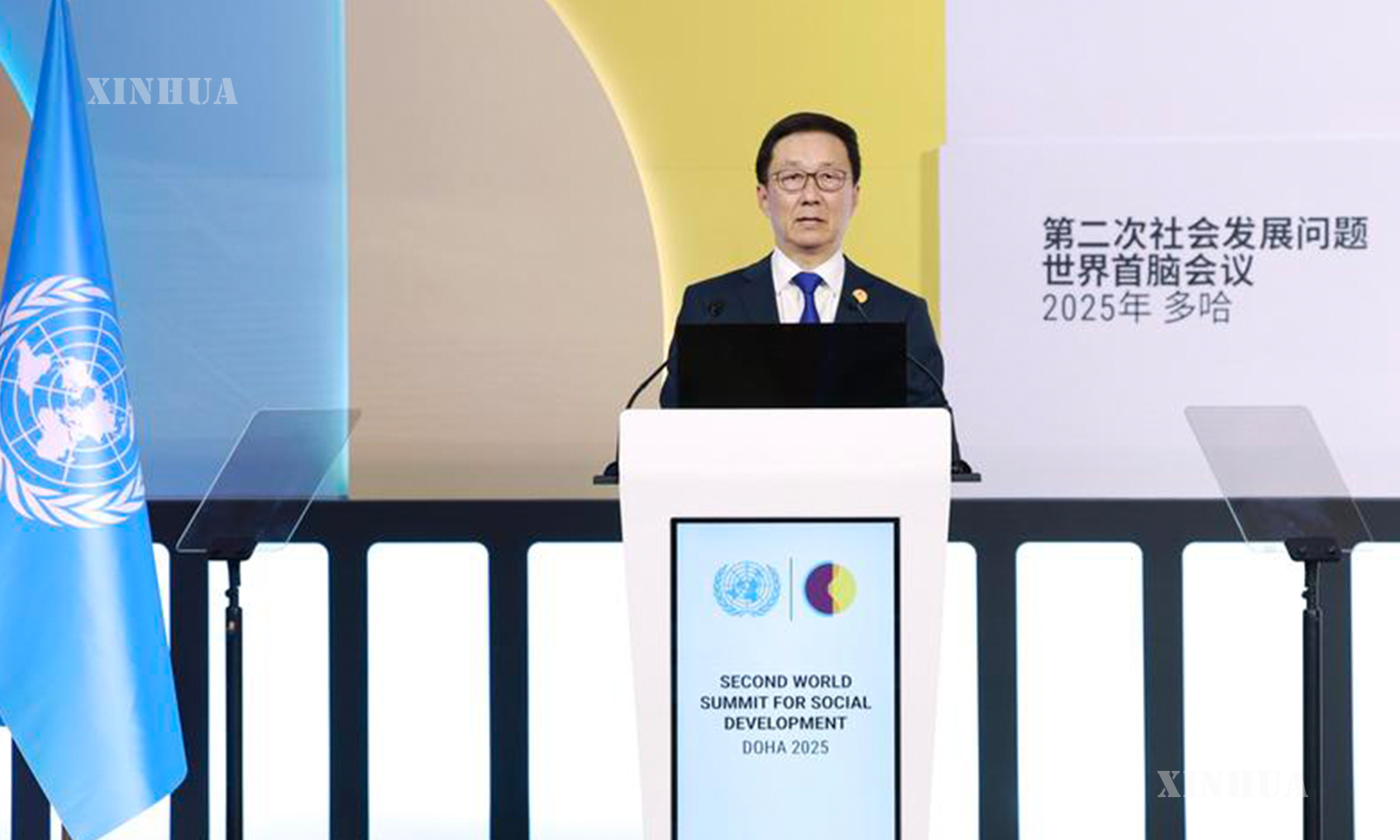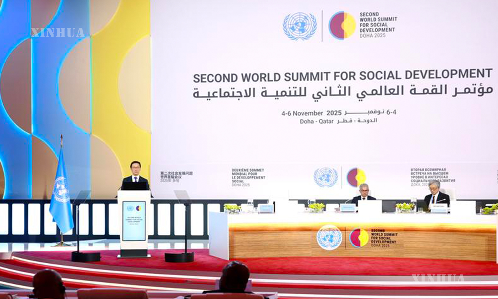 တရုတ်နိုင်ငံ ဒုတိယသမ္မတ ဟန်ကျိန့်သည် ကာတာနိုင်ငံ ဒိုဟာမြို့၌ ဒေသစံတော်ချိန် နိုဝင်ဘာ ၄ ရက်က ကျင်းပသော ဒုတိယအကြိမ် လူမှုဖွံ့ဖြိုးတိုးတက်ရေး ကမ္ဘာ့ထိပ်သီးအစည်းအဝေးသို့ တက်ရောက်၍ ပုံမှန်အချေအတင်ဆွေးနွေးပွဲတွင် ပါဝင်ဆွေးနွေးခဲ့သည်။ထိုသို့ ဆွေးနွေးရာ၌ ဟန်ကျိန့်က ၁၉၉၅ ခုနှစ် မတ်လတွင် ပထမအကြိမ် လူမှုဖွံ့ဖြိုးတိုးတက်ရေး ကမ္ဘာ့ထိပ်သီးအစည်းအဝေးကို အောင်မြင်စွာ ကျင်းပခဲ့ရာ နိုင်ငံအသီးသီးက “ကိုပင်ဟေဂင်ကြေညာချက်” နှင့် “လှုပ်ရှားမှုလမ်းညွှန်အခြေခံမူ” သဘောတူညီချက်ရရှိခဲ့ကြောင်း ပြောကြားခဲ့သည်။ နှစ်ပေါင်း ၃၀ ကြာ ကာလတွင် တရုတ်နိုင်ငံ အစိုးရသည် ပြည်သူဗဟိုပြုသည့် ဖွံ့ဖြိုးတိုးတက်ရေးအတွေးအခေါ်ကို ခိုင်မာစွာ လက်ကိုင်ထားကာ ဆင်းရဲနွမ်းပါးမှုတိုက်ပွဲကို သတ်မှတ်အချိန်အတိုင်း အောင်ပွဲခံနိုင်ပြီး ကုလသမဂ္ဂ၏ ၂၀၃၀ ပြည့်နှစ် စဉ်ဆက်မပြတ်ဖွံ့ဖြိုးတိုးတက်ရေး ရည်မှန်းချက်ကို ၁၀ နှစ်စော၍ အကောင်အထည်ဖော်ဆောင်နိုင်ခဲ့ကြောင်း၊ အလုပ်အကိုင်နေရာချထားရေး ဦးစားပေးမဟာဗျူဟာကို အကောင်အထည်ဖော်ဆောင်ကာ ဖွံ့ဖြိုးတိုးတက်မှုအတွင်း လူမှုဘဝ အာမခံရေးနှင့် ကောင်းမွန်ရေးကို လုပ်ဆောင်ပြီး ကမ္ဘာ၌ ပမာဏအကြီးမားဆုံးသော ပညာရေး၊ ကျန်းမာရေးစောင့်ရှောက်မှုနှင့် လူမှုဖူလုံရေးစနစ်ကို တည်ဆောက်၍ လူမှုအသိုက်အဝန်း အားလုံးပါဝင်သော တိုးတက်ရေးကို မြှင့်တင်ခဲ့ကြောင်း၊ တရုတ်နိုင်ငံသည် အခြားနိုင်ငံများနှင့် ဆင်ရဲနွမ်းပါးမှုလျှော့ချရေး၊ ဖွံ့ဖြိုးတိုးတက်ရေး အတွေ့အကြုံများကိုလည်း တက်ကြွစွာ မျှဝေခဲ့ပြီး လူသားမျိုးနွယ် လူမှုဖွံ့ဖြိုးတိုးတက်ရေးကိုမြှင့်တင်ရာတွင် သင့်လျော်သည့် အကျိုးကို ဆောင်ကြဉ်းခဲ့ကြောင်း ၎င်းက ပြောကြားခဲ့သည်။