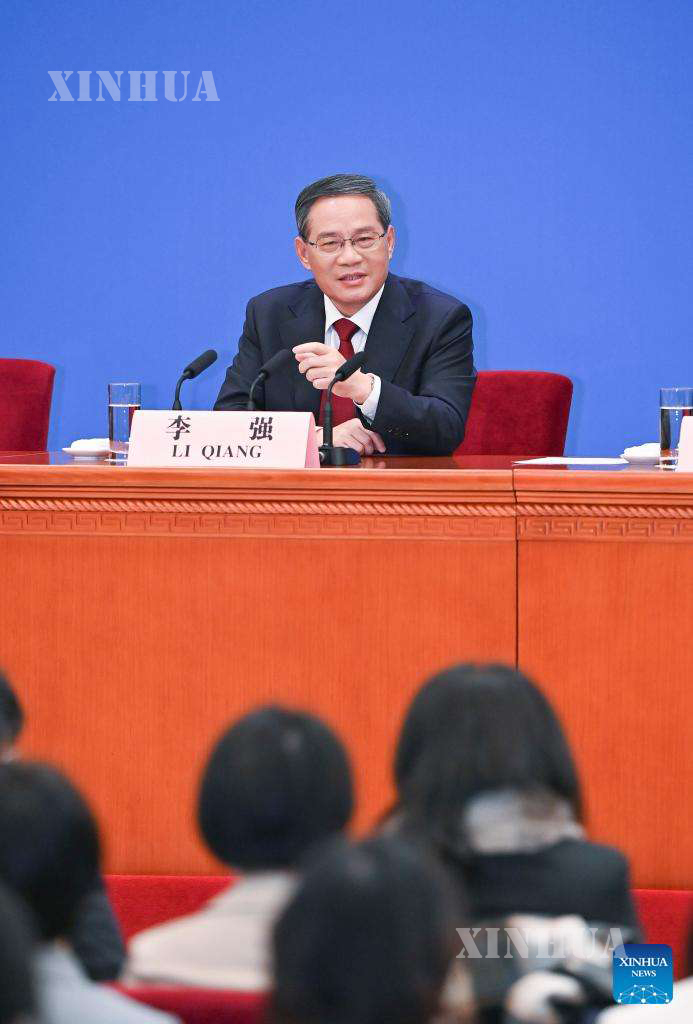 Chinese Premier Li Qiang meets the press after the closing of the first session of the 14th National People’s Congress (NPC) at the Great Hall of the People in Beijing, capital of China, March 13, 2023. (Xinhua/Yue Yuewei)