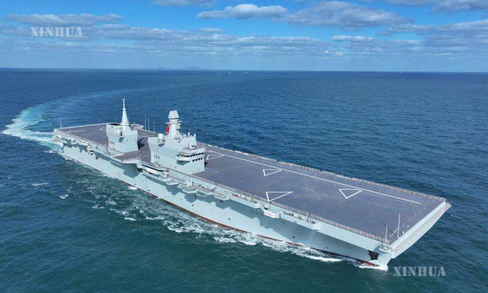 China’s first Type 076 amphibious assault ship, the Sichuan, is underway on Nov. 15, 2025. (Photo by Zhang Liang/Xinhua)