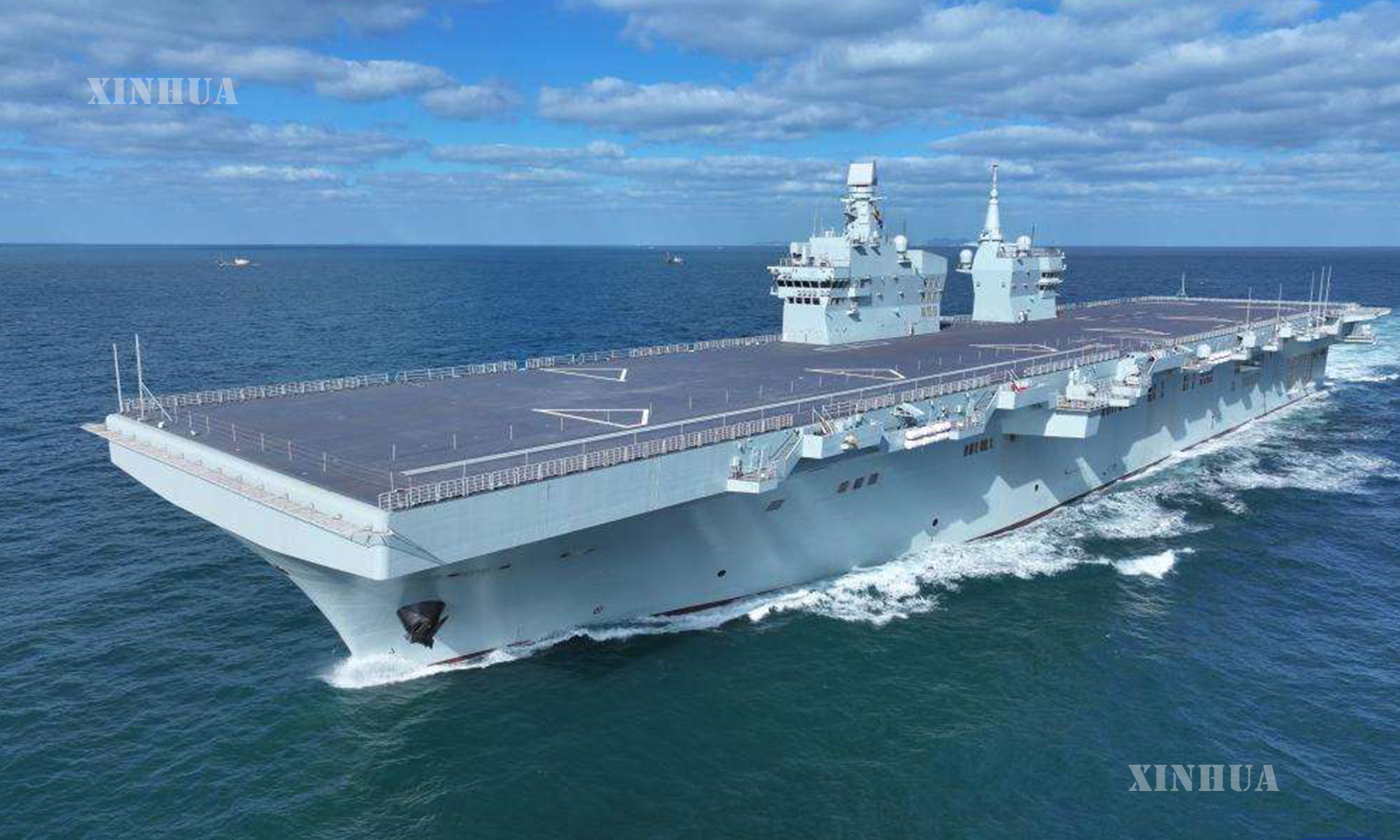 China’s first Type 076 amphibious assault ship, the Sichuan, is underway on Nov. 15, 2025. (Photo by Zhang Liang/Xinhua)