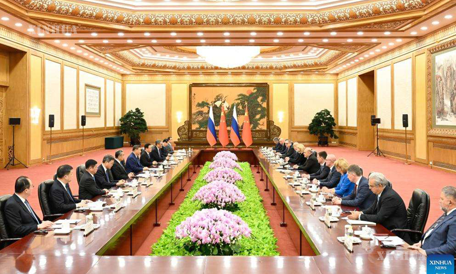 Chinese President Xi Jinping meets with Russian Prime Minister Mikhail Mishustin at the Great Hall of the People in Beijing, capital of China, Nov. 4, 2025. (Xinhua/Shen Hong)