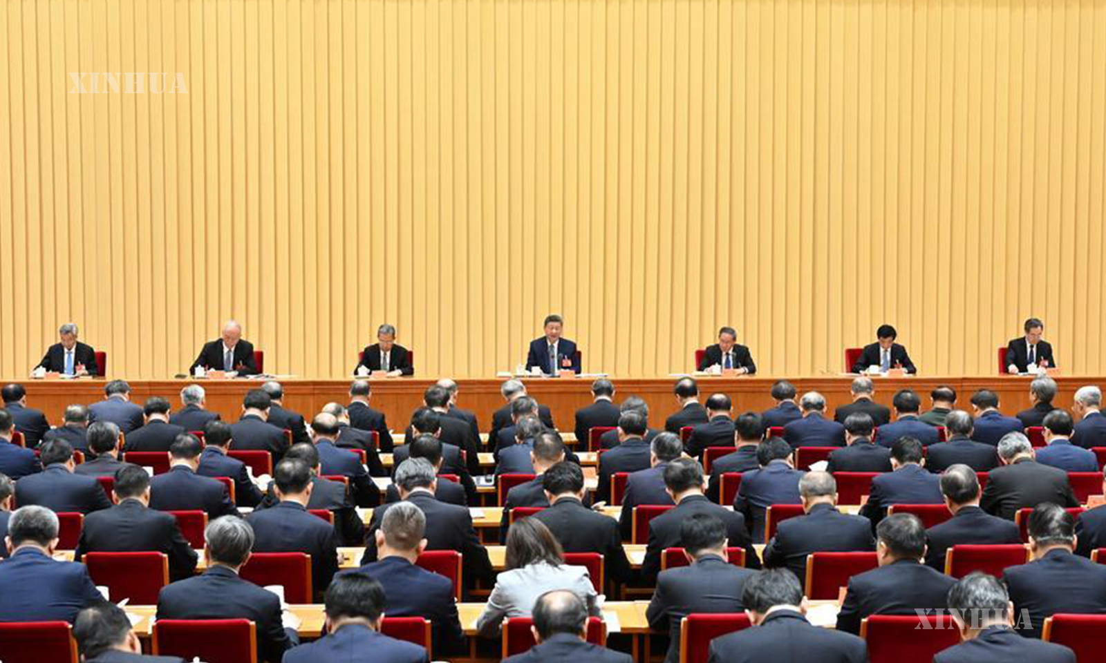 တရုတ်ကွန်မြူနစ်ပါတီ ဗဟိုကော်မတီ အထွေထွေအတွင်းရေးမှူးချုပ်၊ နိုင်ငံတော်သမ္မတ နှင့် ဗဟိုစစ်ကော်မရှင် ဥက္ကဋ္ဌ ရှီကျင့်ဖိန်က တရုတ်နိုင်ငံ မြို့တော် ပေကျင်းတွင် ကျင်းပသော ဗဟိုစီးပွားရေးလုပ်ငန်း နှစ်ပတ်လည်ကွန်ဖရင့်၌ အရေးကြီးမိန့်ခွန်းပြောကြားနေစဉ် (ဆင်ဟွာ)