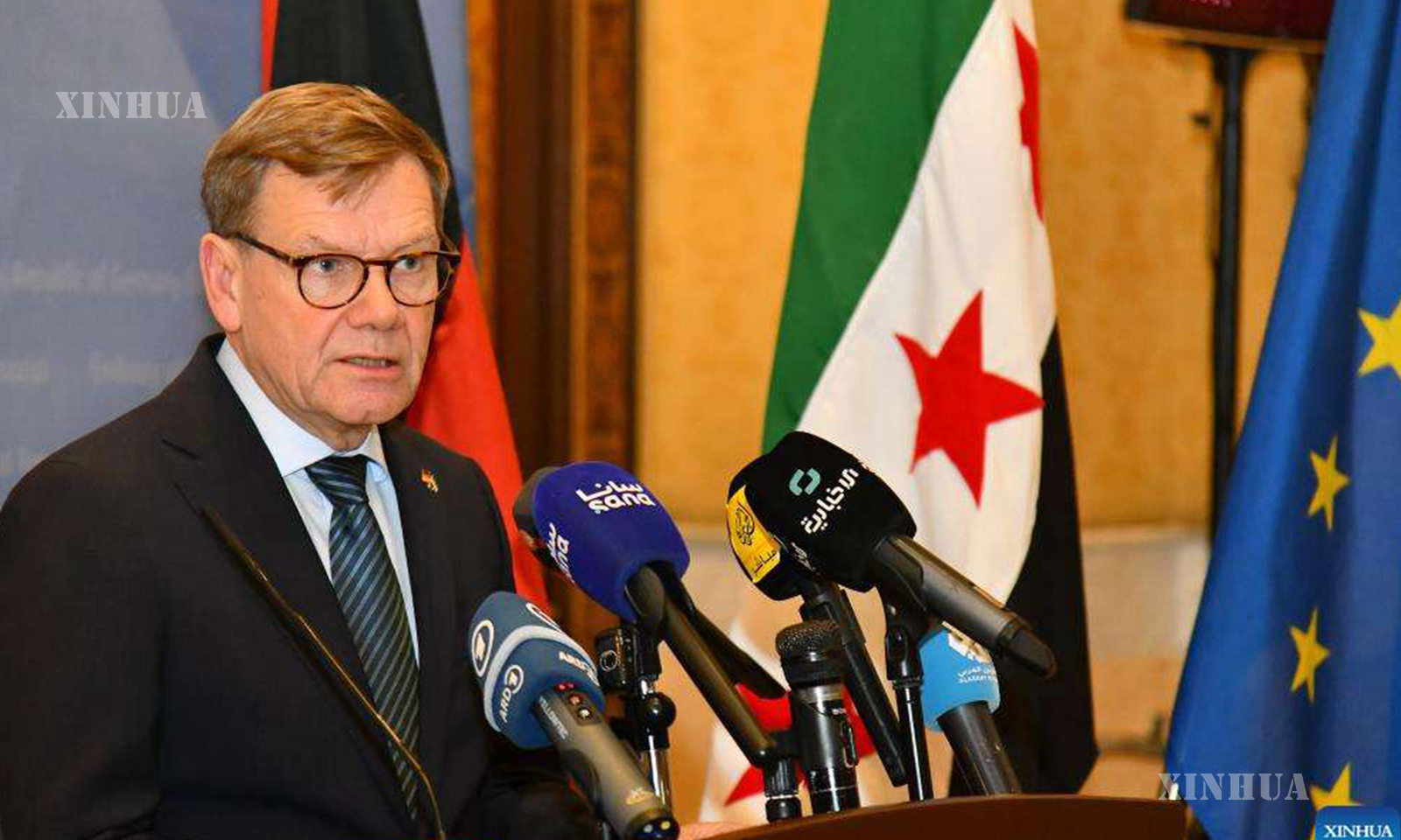 Visiting German Foreign Minister Johann Wadephul speaks during a press conference in Damascus, Syria, Oct. 30, 2025. (Photo by Ammar Safarjalani/Xinhua)