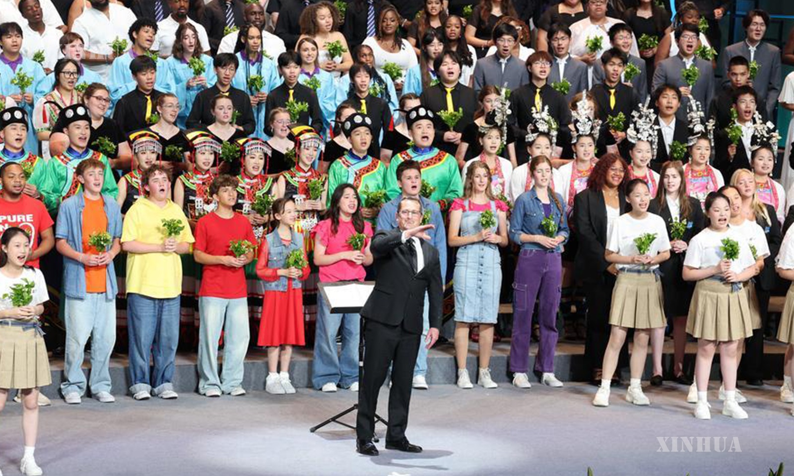 Teenagers from China and the United States sing during a performance at China National Opera House in Beijing, capital of China, July 16, 2025. (Xinhua/Lu Ye)