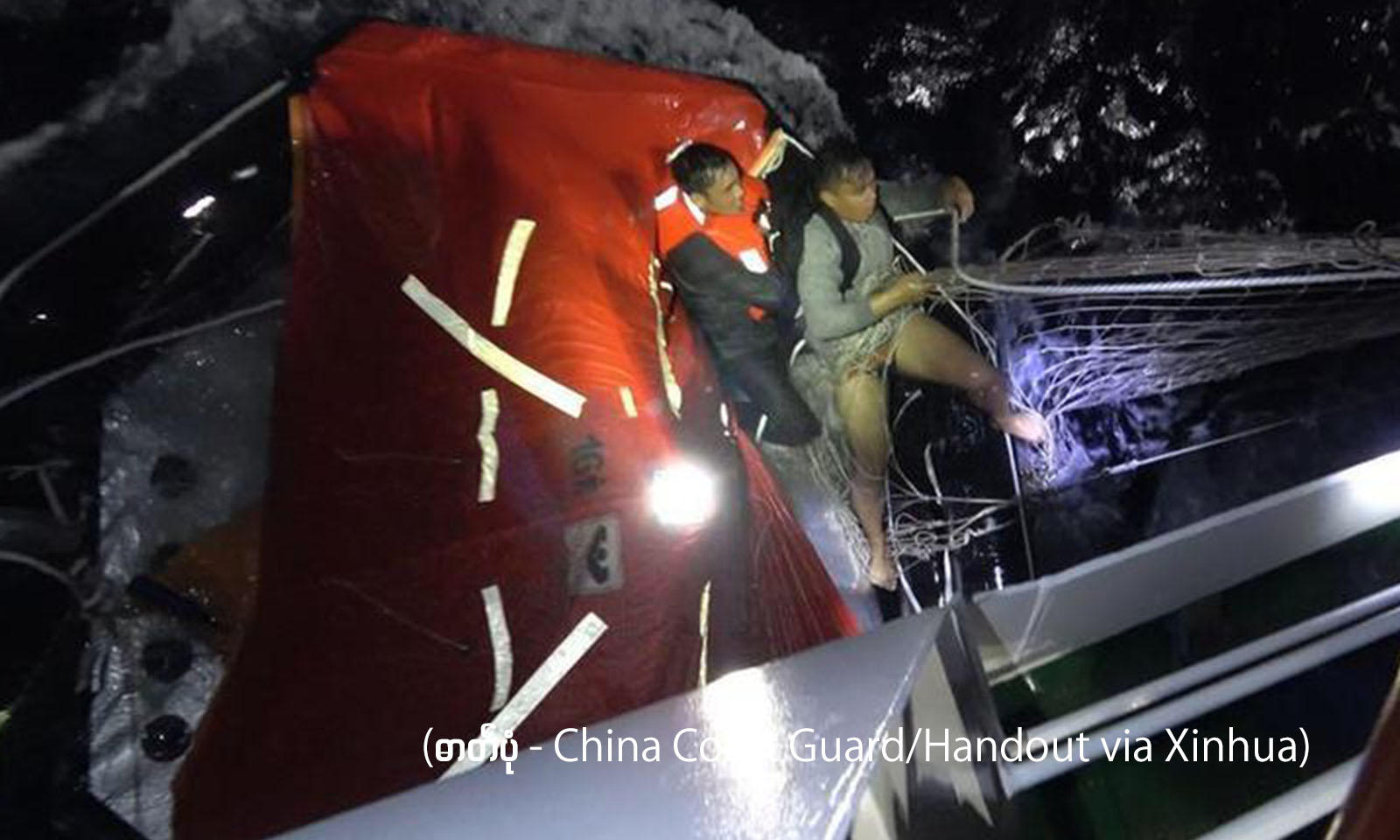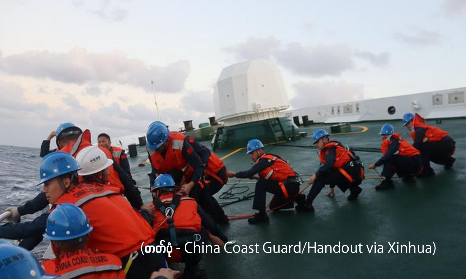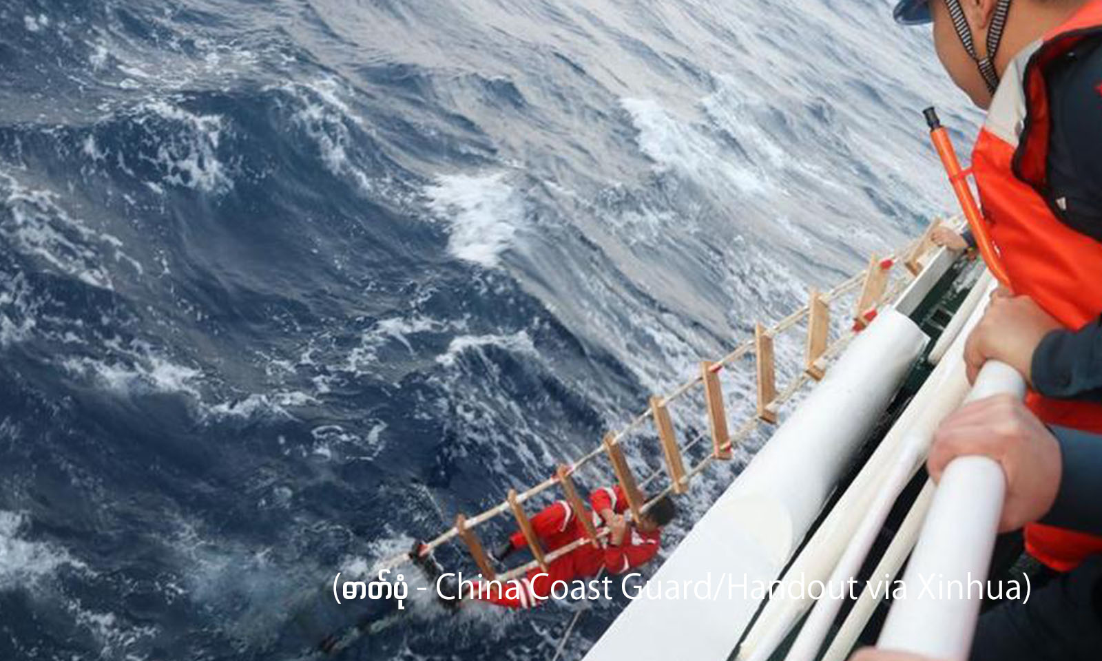 တရုတ်နိုင်ငံ တောင်ပိုင်း ဟွမ်ရန်သောင်ကျွန်းရှိ ပိုင်နက်ရေပြင်တွင် နိုင်ငံခြားကုန်တင်သင်္ဘောတစ်စင်း နစ်မြုပ်ပြီးနောက် ကယ်တယ်ရေးလုပ်ငန်းဆောင်ရွက်နေသည်ကို ၂၀၂၆ ခုနှစ် ဇန်နဝါရီ ၂၃ ရက်က ကယ်ဆယ်နေစဉ် (ဓာတ်ပုံ – China Coast Guard/Handout via Xinhua)