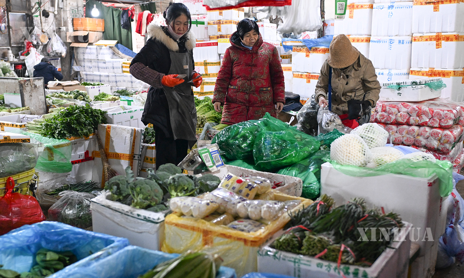 တရုတ်နိုင်ငံ ရှင်းကျန်းဒေသ ဝူးလူမုချီမြို့ ဆားရီးပါးခဲ့ခရိုင်ရှိ လျင်ချင့်ဟင်းသီးဟင်းရွက်လက်ကားဈေးတွင် ဟင်းသီးဟင်းရွက်များ ရွေးချယ်ဝယ်ယူနေသော မြို့ခံများအား ၂၀၂၆ ခုနှစ် ဇန်နဝါရီ ၂၁ ရက်က တွေ့ရစဉ် (ဆင်ဟွာ)
