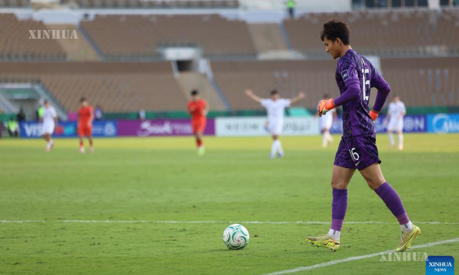 Li Hao, goalkeeper of China, competes during the 2026 AFC U23 Asian Cup quarterfinal match between China and Uzbekistan in Jeddah, Saudi Arabia, Jan. 17, 2026. (Xinhua/Wang Haizhou)
