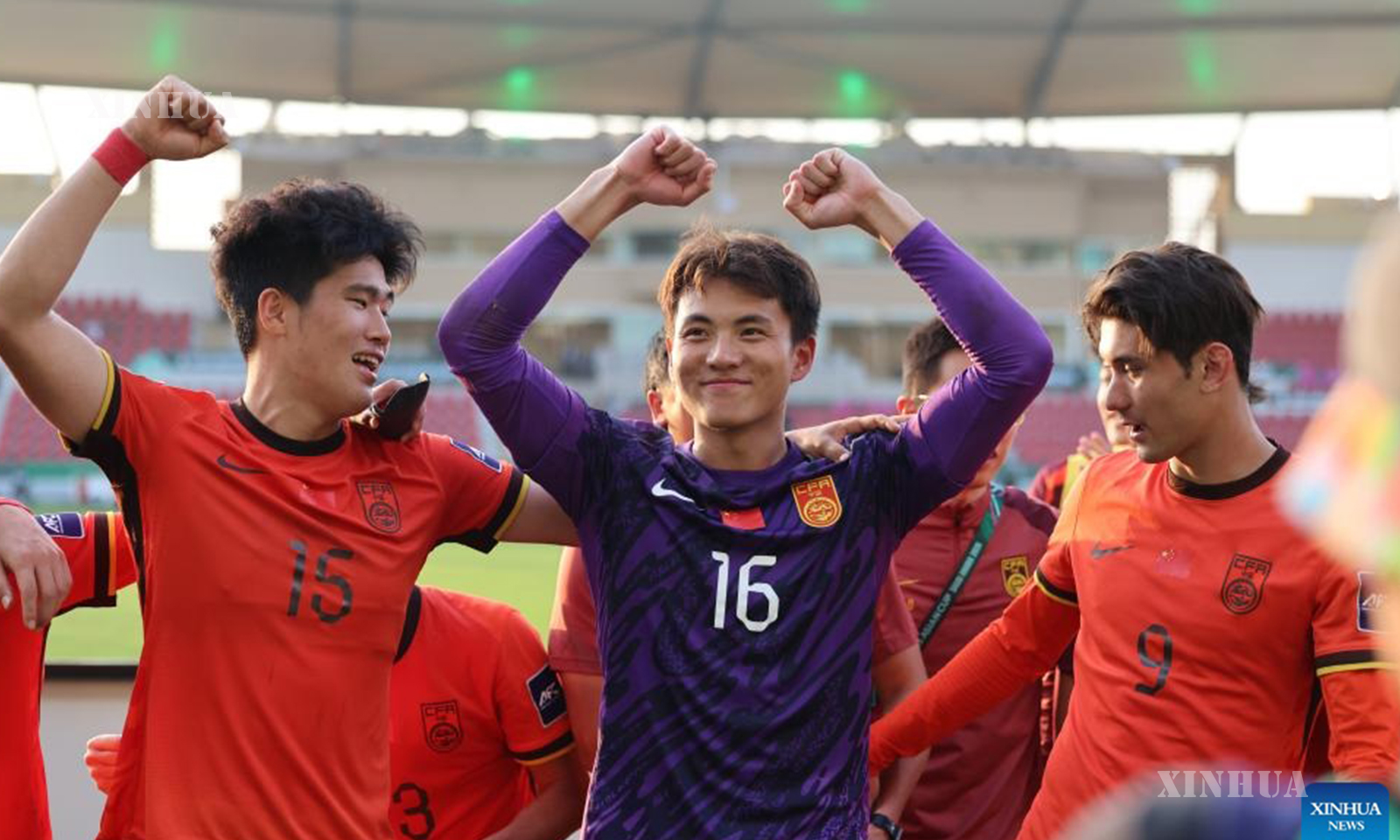 Team China celebrate winning the 2026 AFC U23 Asian Cup quarterfinal match between China and Uzbekistan in Jeddah, Saudi Arabia, Jan. 17, 2026. (Xinhua/Wang Haizhou)