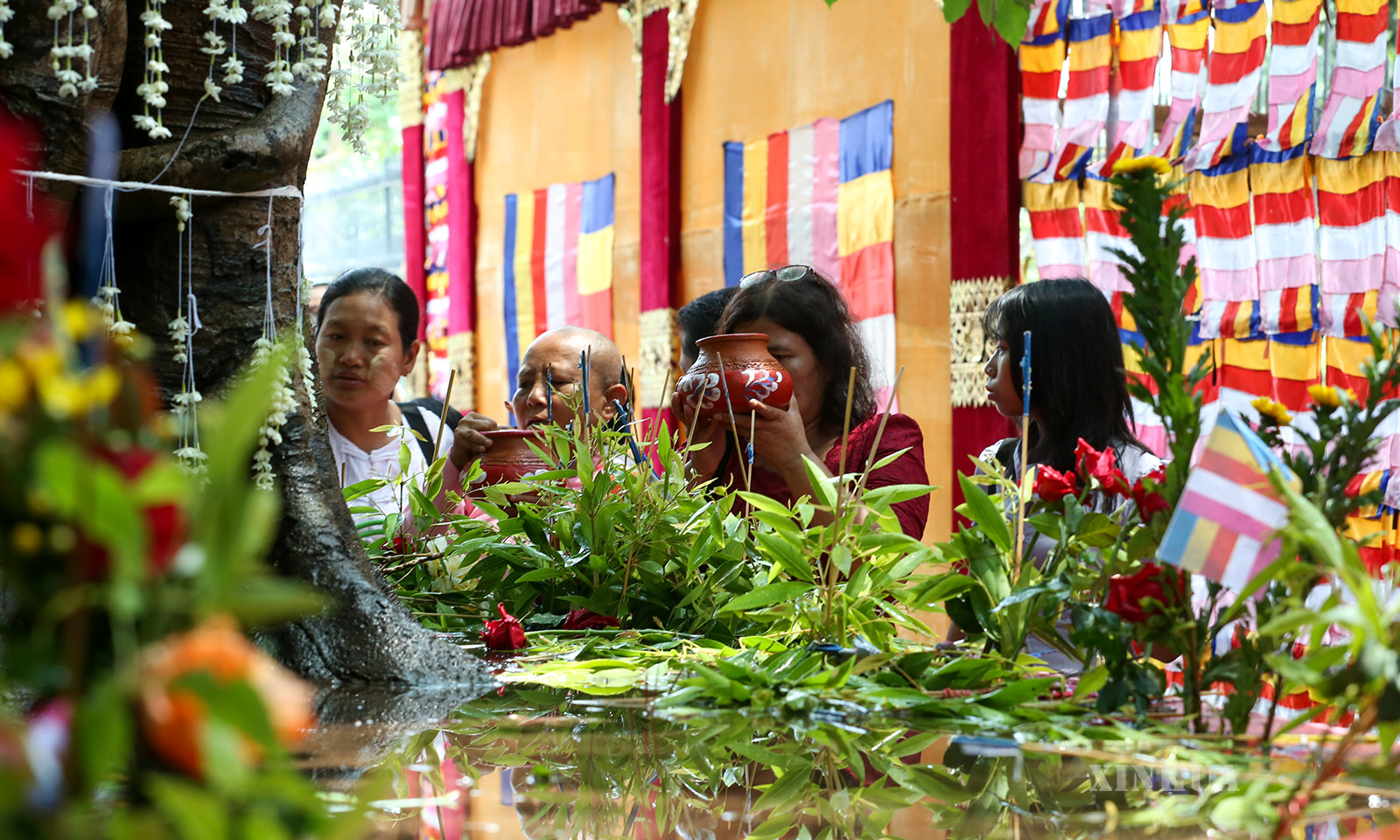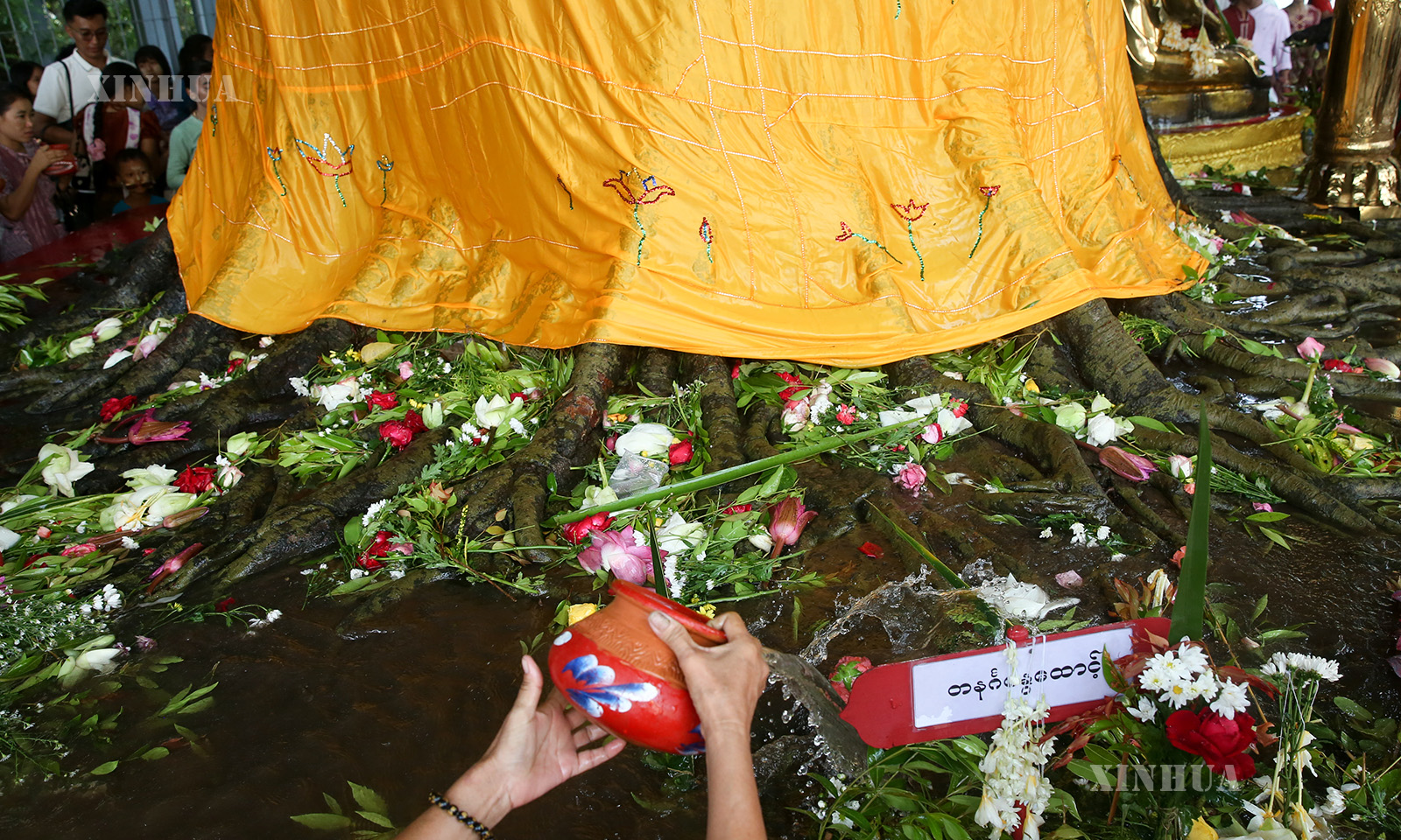 မြန်မာနိုင်ငံ ရန်ကုန်မြို့ရှိ ရွှေတိဂုံစေတီတော်၌ ၂၀၂၆ ခုနှစ် ဧပြီ ၃၀ ရက် (ကဆုန်လပြည့်ဗုဒ္ဓနေ့) တွင် ဘုရားဖူးပြည်သူများ ကဆုန်ညောင်ရေသွန်းလောင်း ပူဇော်ကြမှုမြင်ကွင်းများကို ဖော်ပြအပ်ပါသည်။ (Xinhua)