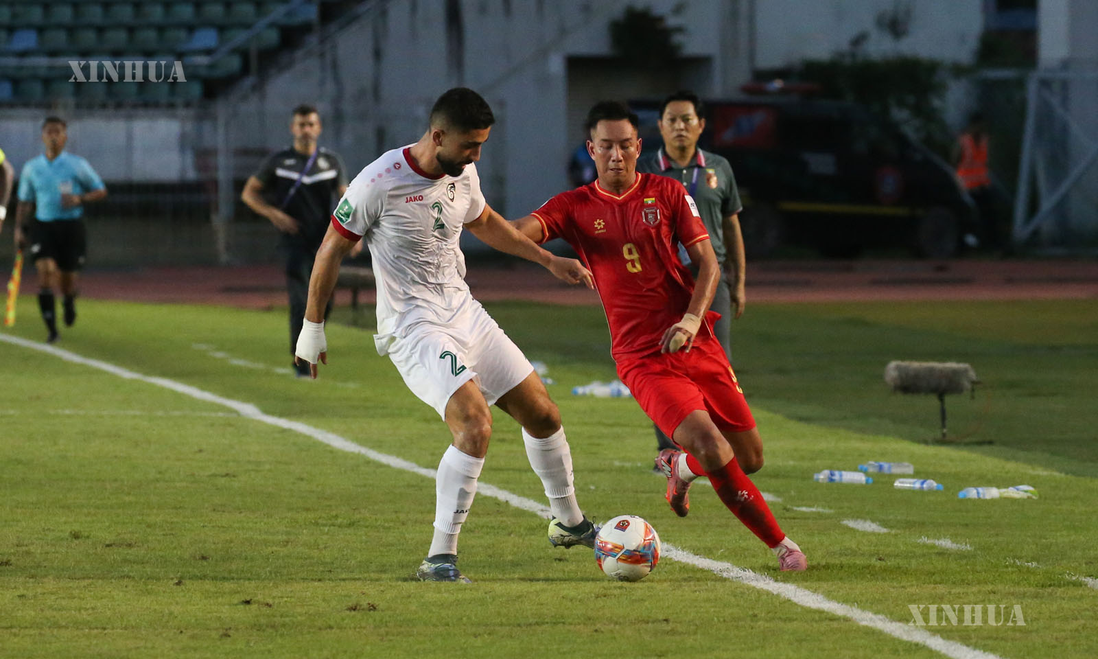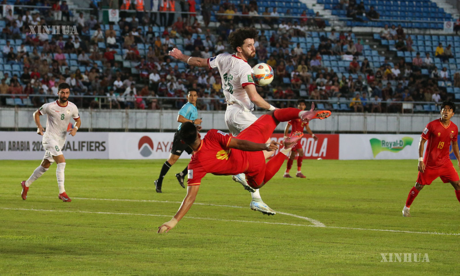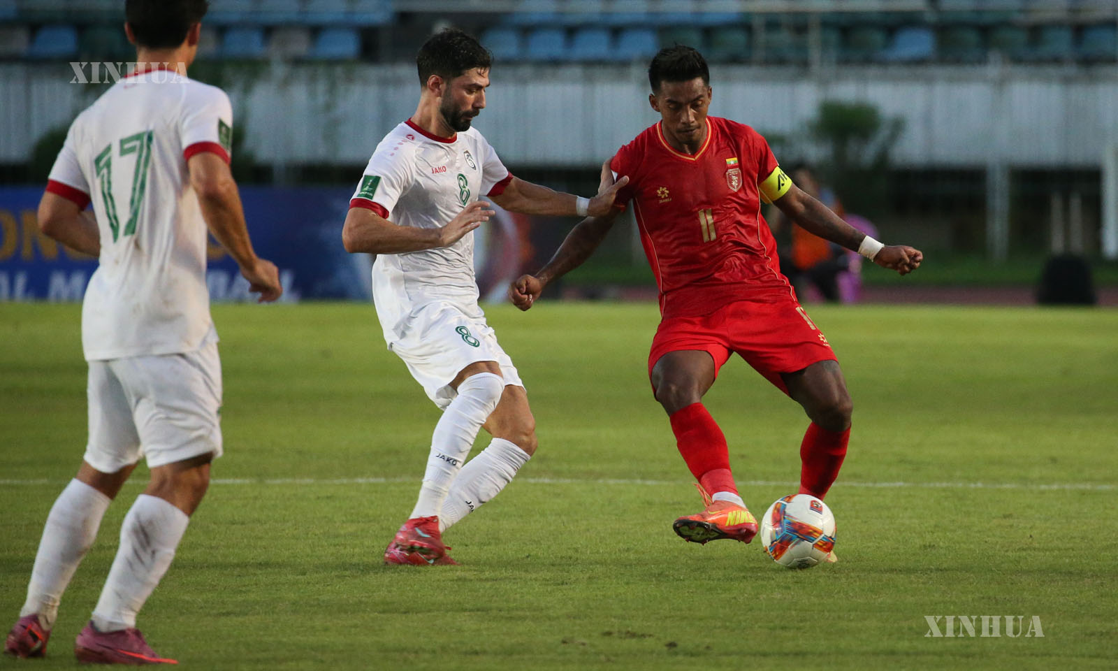 ၂၀၂၇ အာရှဖလားခြေစစ်ပွဲ တတိယအဆင့် အုပ်စု ပွဲစဉ် တစ်ပွဲအဖြစ် မြန်မာ့လက်ရွေးစင် အသင်းနှင့် ဆီးရီးယားအသင်းတို့  အောက်တိုဘာ ၁၄ရက်က မြန်မာနိုင်ငံ ရန်ကုန်မြို့ သုဝဏ္ဏကွင်းတွင် ယှဉ်ပြိုင်ကစားခဲ့ရာ မြန်မာအသင်းက သုံးဂိုး ဂိုးမရှိဖြင့်ရှုံးနိမ့်ခဲ့သည်။ (Xinhua)