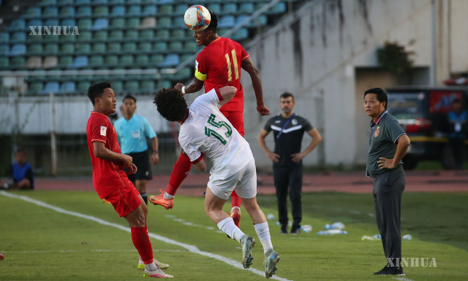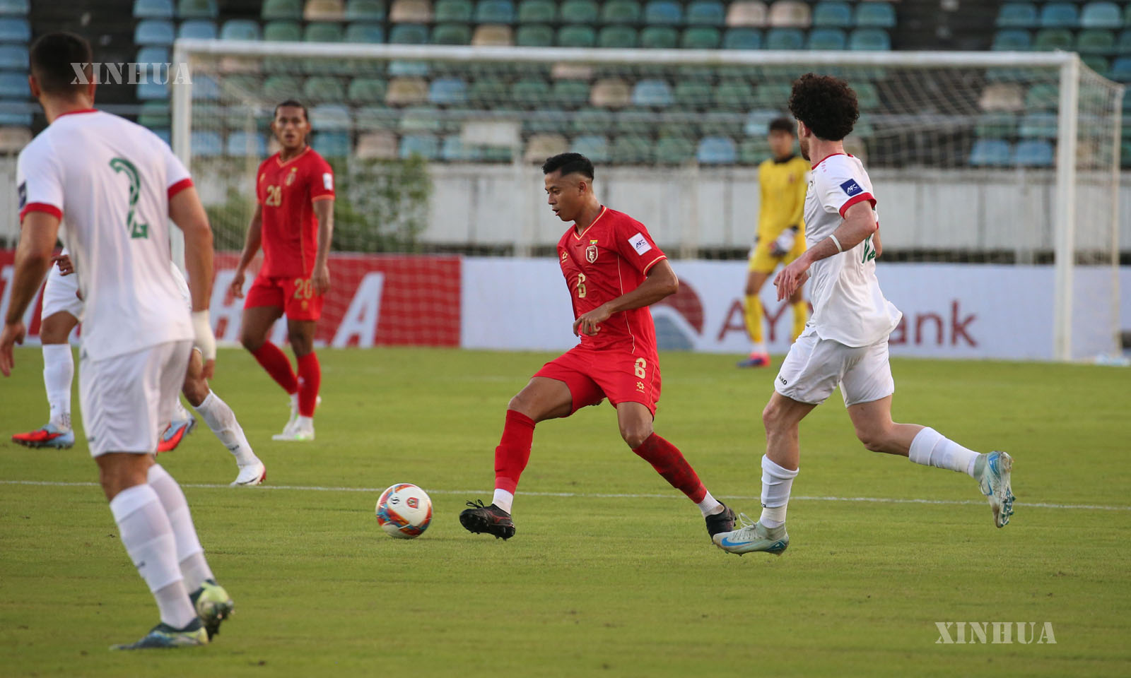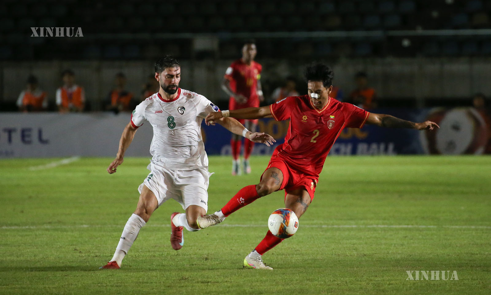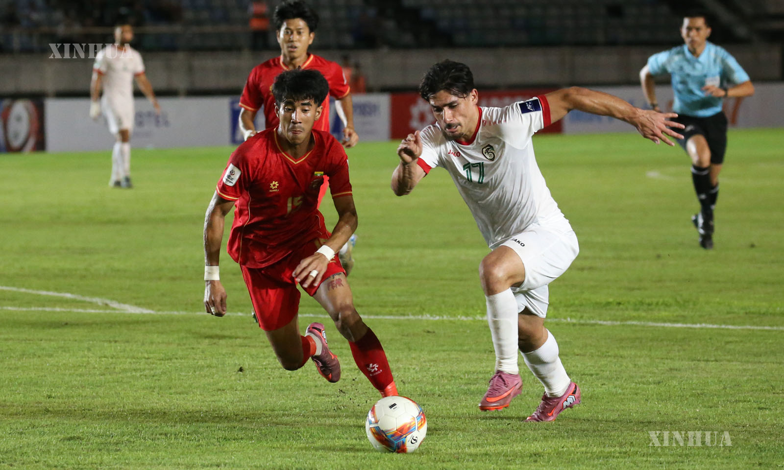 ၂၀၂၇ အာရှဖလားခြေစစ်ပွဲ တတိယအဆင့် အုပ်စု ပွဲစဉ် တစ်ပွဲအဖြစ် မြန်မာ့လက်ရွေးစင် အသင်းနှင့် ဆီးရီးယားအသင်းတို့  အောက်တိုဘာ ၁၄ရက်က မြန်မာနိုင်ငံ ရန်ကုန်မြို့ သုဝဏ္ဏကွင်းတွင် ယှဉ်ပြိုင်ကစားခဲ့ရာ မြန်မာအသင်းက သုံးဂိုး ဂိုးမရှိဖြင့်ရှုံးနိမ့်ခဲ့သည်။ (Xinhua)