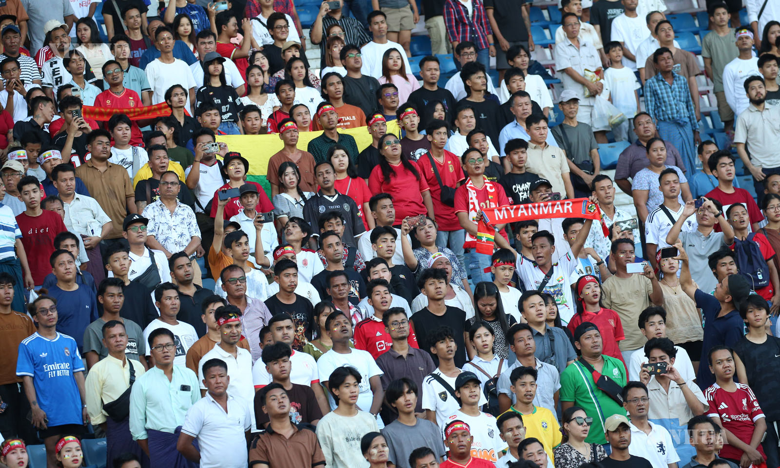 မြန်မာနိုင်ငံ ရန်ကုန်မြို့ သုဝဏ္ဏကွင်းတွင် ၂၀၂၅ခုနှစ် အောက်တိုဘာ ၁၄ ရက်က ယှဉ်ပြိုင်ကစားခဲ့သည့် မြန်မာအသင်းနှင့် ဆီးရီးယားအသင်းတို့ ပွဲစဉ်မြင်ကွင်းများ (ဆင်ဟွာ)