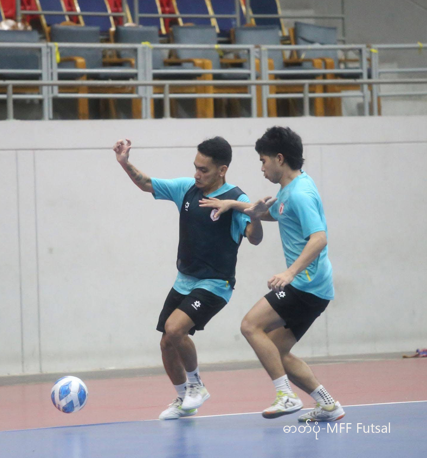 ၃၃ ကြိမ်မြောက် ဆီးဂိမ်းပြိုင်ပွဲအတွက် လေ့ကျင့်ပြင်ဆင်လျက်ရှိသော မြန်မာ့လက်ရွေးစင် ဖူဆယ် အမျိုးသားအသင်း၏ နိုဝင်ဘာ ၇ ရက်နေ့ လေ့ကျင့်မှု ပုံရိပ်များကို တွေ့ရစဉ် (ဓာတ်ပုံ-MFF Futsal)