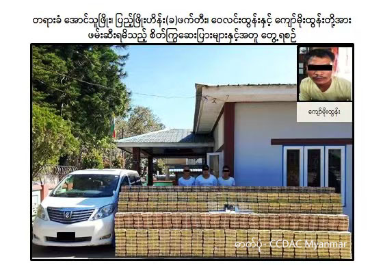 ကွင်းဆက်ဖော်ထုတ်ချက်အရ စိတ်ကြွဆေးပြားများ သယ်ဆောင်ရာတွင် ပူးပေါင်းပါဝင်သူ အမျိုးသားတစ်ဦးကို ဖမ်းဆီးရမိခဲ့ကြောင်း၊ စစ်ဆေးဖော်ထုတ်ချက်များအရ အဆိုပါ ဖမ်းဆီးရမိသော စိတ်ကြွဆေးပြားများသည် ရှမ်းပြည်နယ်မှ ရခိုင်ပြည်နယ်၊ တောင်ကုတ်မြို့သို့ သယ်ဆောင်ရောင်းဝယ်ခြင်းဖြစ်ကြောင်း သိရသည်။