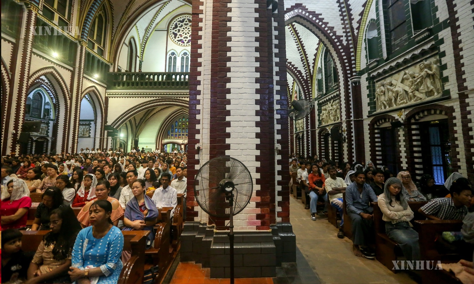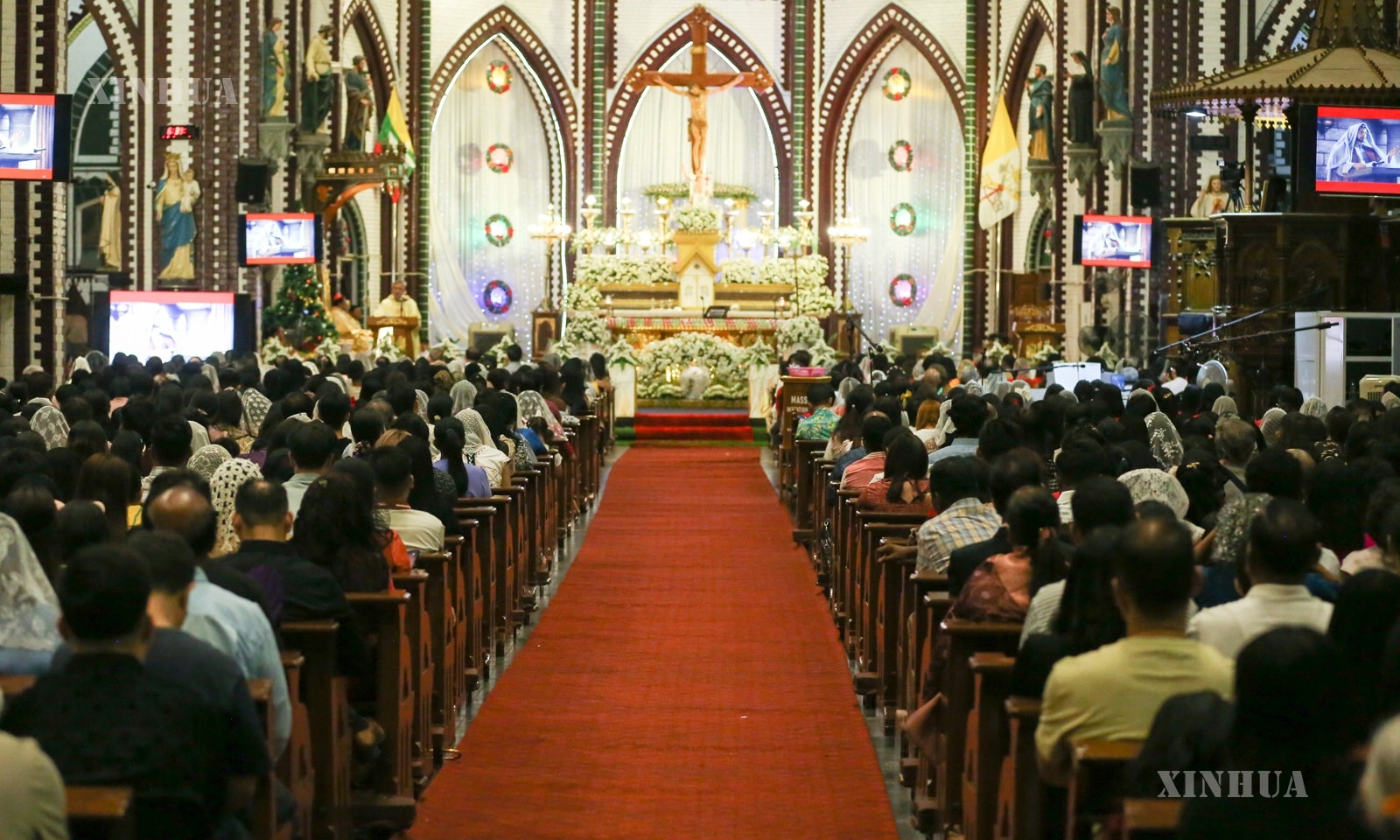 မြန်မာနိုင်ငံ ရန်ကုန်မြို့ ဗိုလ်အောင်ကျော်လမ်းရှိ စိန်မေရီကာသီဒြယ်ဘုရားကျောင်းတွင် ၂၀၂၅ ခုနှစ်၊ ဒီဇင်ဘာ ၂၄ ရက် ညပိုင်းက ပြုလုပ်ခဲ့သည့် ခရစ္စမတ်အကြိုညမစ္ဆားတရားတော်မြတ်ဝတ်ပြုဆုတောင်းပွဲမြင်ကွင်းများကို ဖော်ပြအပ်ပါသည်။ (Xinhua)