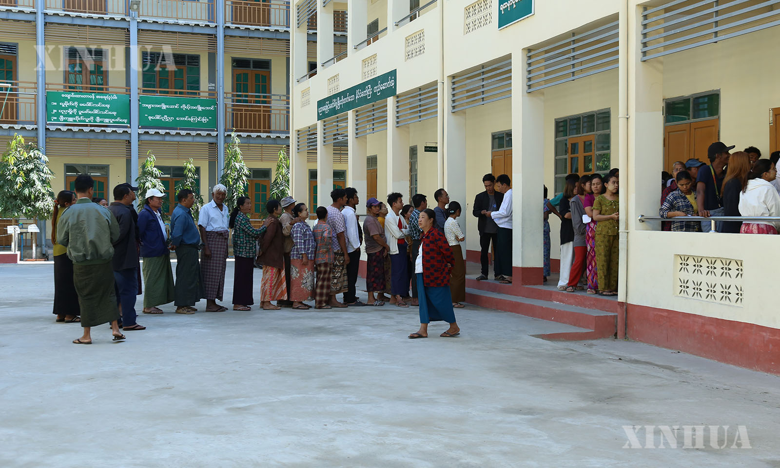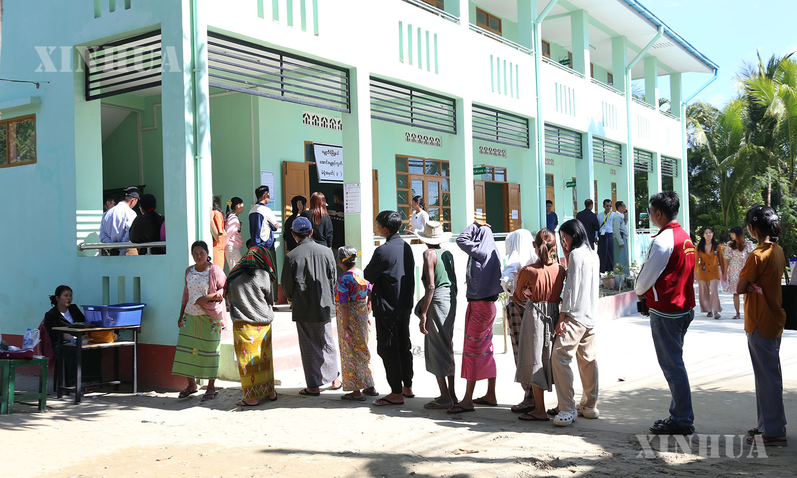 ၂၀၂၅ အထွေထွေရွေးကောက်ပွဲ အပိုင်း (၁) တွင် နေပြည်တော်ကောင်စီနယ်မြေအတွင်း မဲလာရောက်ပေးသူများအား တွေ့ရစဥ်(ဆင်ဟွာ)
