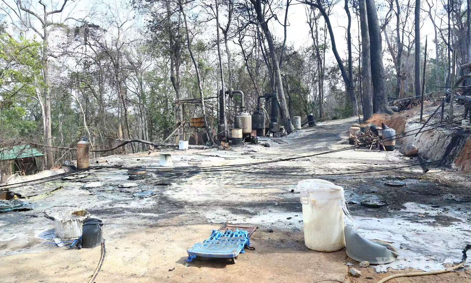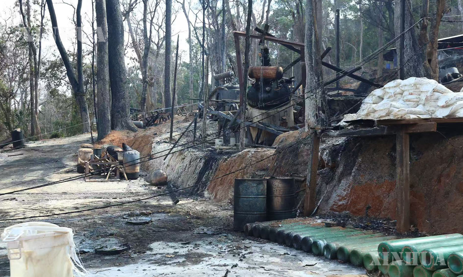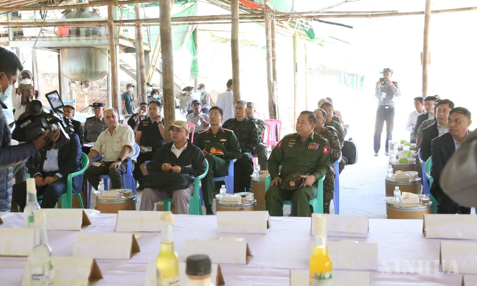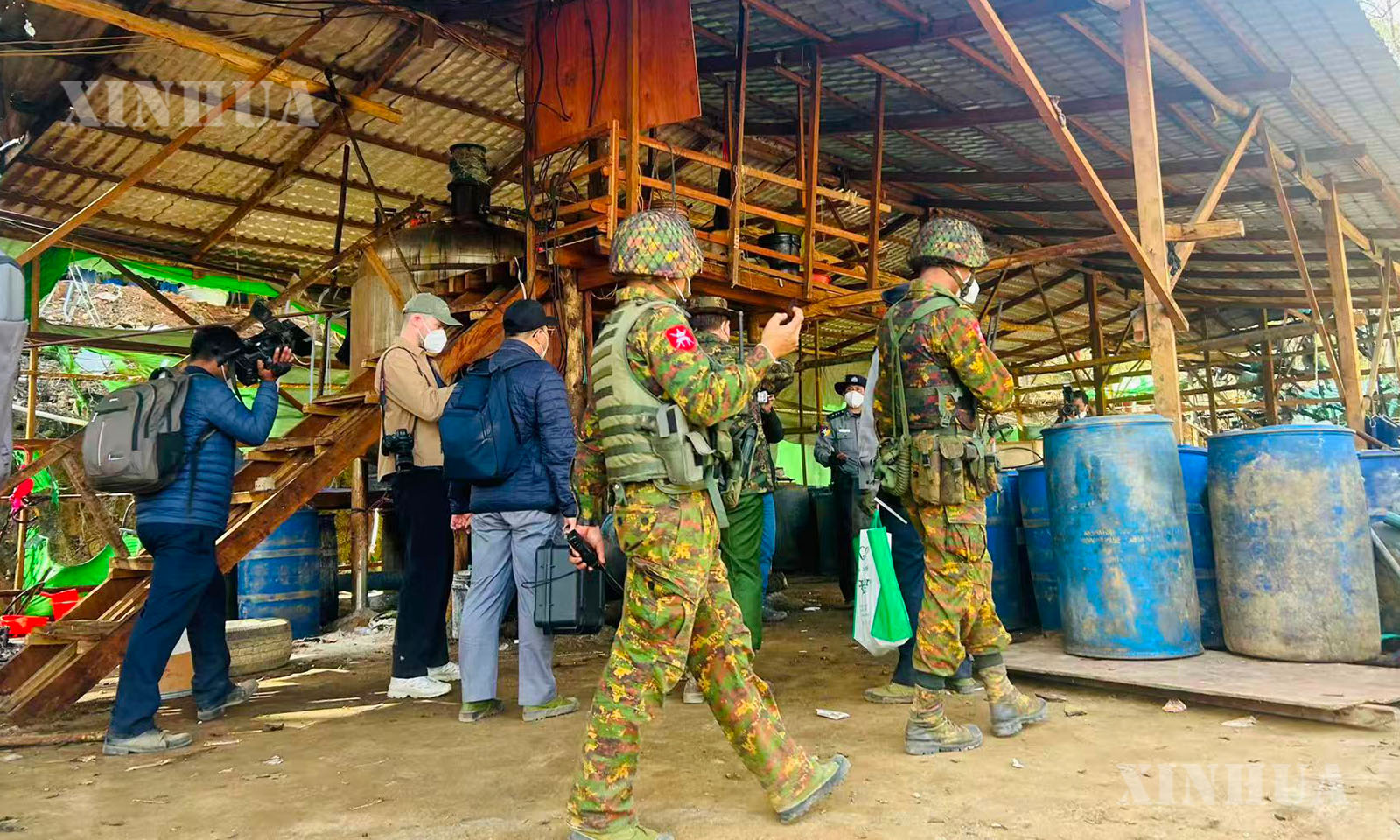 အဆိုပါ ဖော်ထုတ်ဖမ်းဆီးရမိသည့် မူးယစ်ဆေးဝါးချက်လုပ်သည့်နေရာများသို့ ပြည်ထဲရေးဝန်ကြီးဌာန ပြည်ထောင်စုဝန်ကြီး၊ အမျိုးသားကာကွယ်ရေးနှင့် လုံခြုံရေးကောင်စီ သတင်းထုတ်ပြန်ရေးအဖွဲ့ အဖွဲ့ခေါင်းဆောင် ပြန်ကြားရေးဝန်ကြီးဌာန ဒုတိယဝန်ကြီးနှင့် တာဝန်ရှိသူများ၊ သံတမန်များ၊ သတင်းမီဒီယာ အဖွဲ့များသည် မိုင်းရယ်မြို့၏ အနောက်တောင်ဘက် ၂၀ ကီလိုမီတာခန့်အကွာ၌ မူးယစ်ဆေးဝါးချက်လုပ်သည့်နေရာအား မြေပြင်ကွင်းဆင်းလိုက်လံရှင်းလင်းပြသခဲ့ကြောင်း သိရသည်။ (Xinhua)