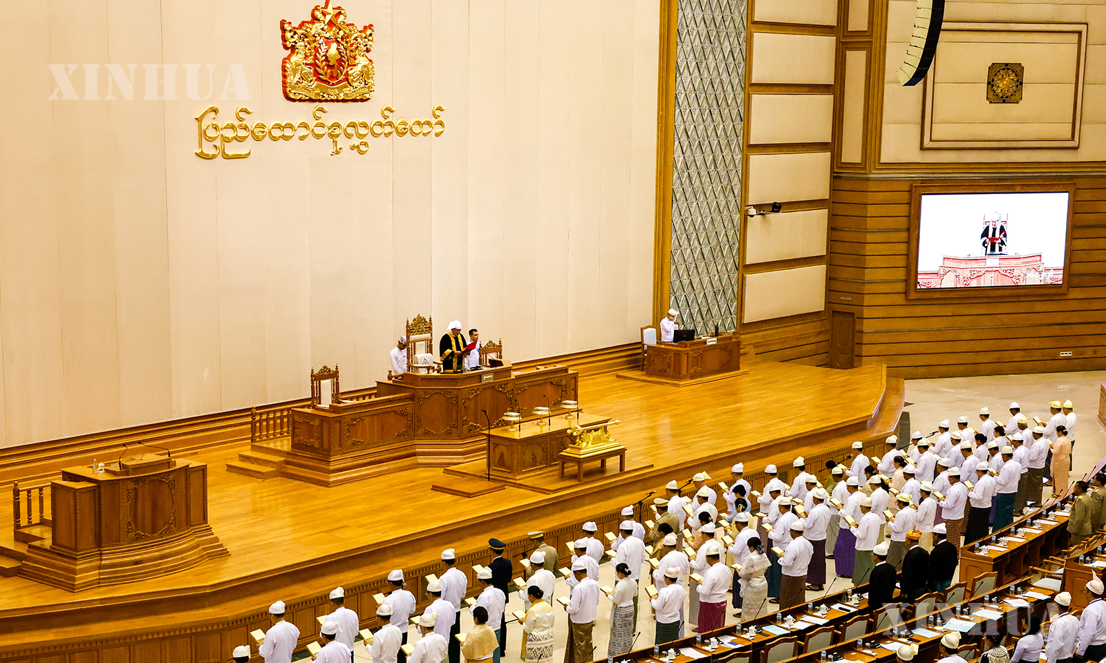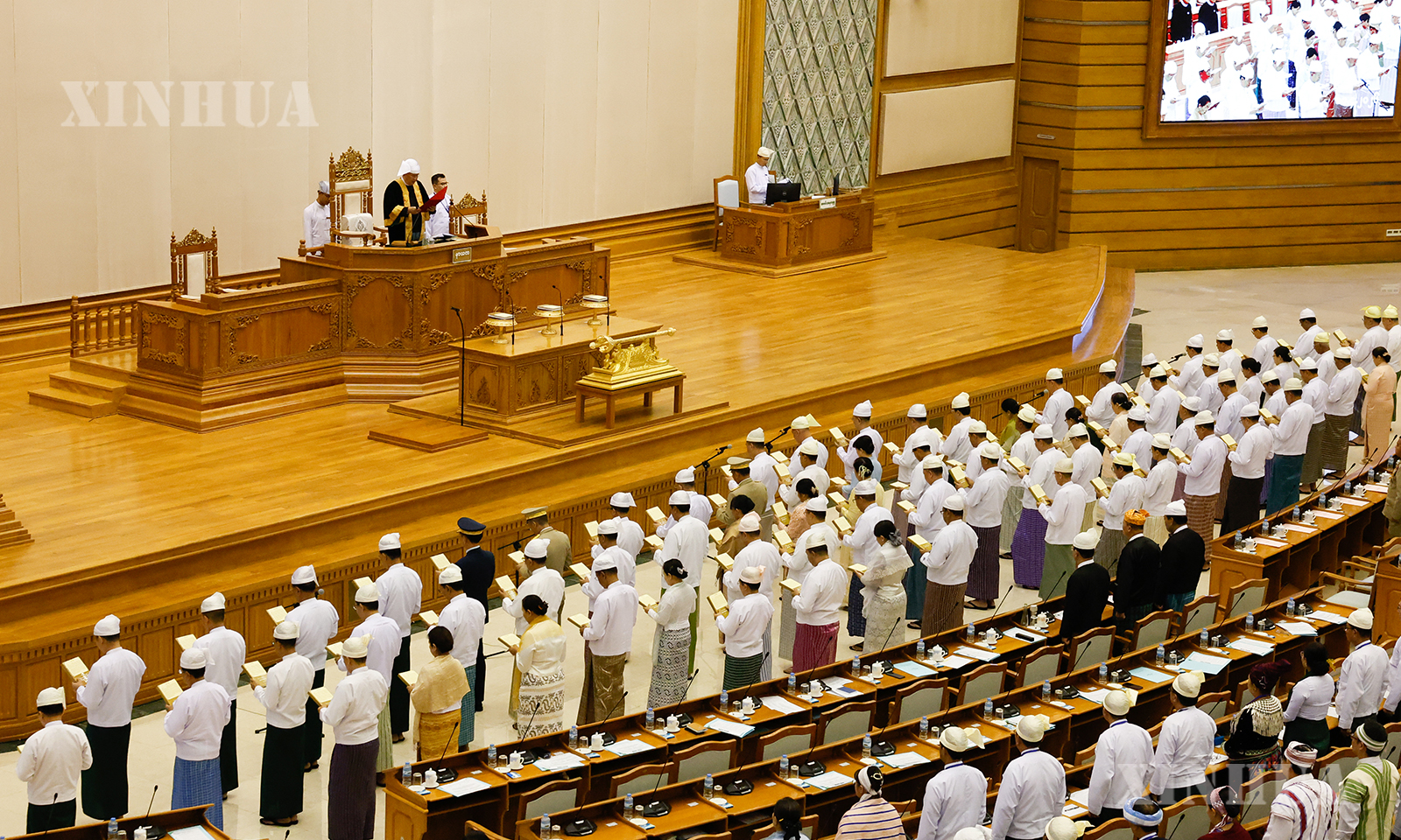 အဆိုပါ ပြည်ထောင်စုအစိုးရအဖွဲ့သစ်နှင့် ကောင်စီဖွဲ့စည်းခြင်းဆိုင်ရာ သမ္မတရုံးအမိန့်ကြေညာချက်များကို မြန်မာနိုင်ငံ သမ္မတ ဦးမင်းအောင်လှိုင်က လက်မှတ်ရေးထိုး ထုတ်ပြန်ခဲ့ခြင်းဖြစ်သည်။ (Xinhua)