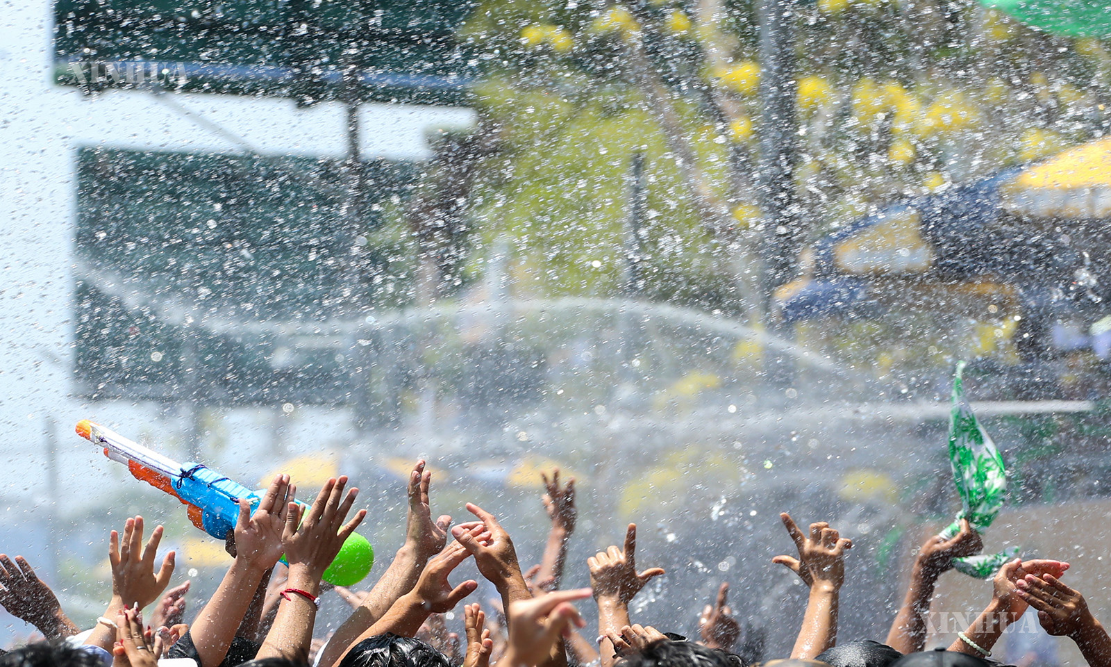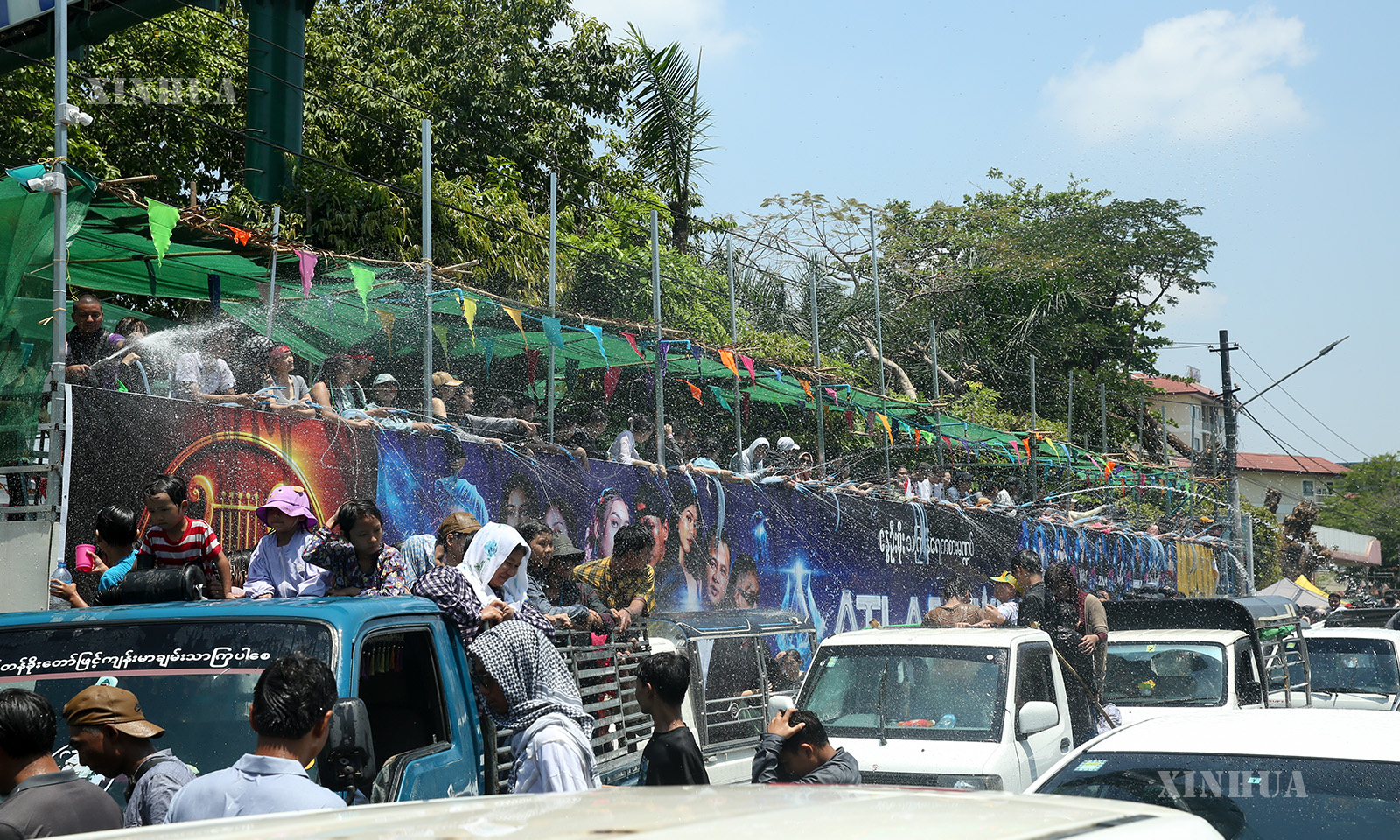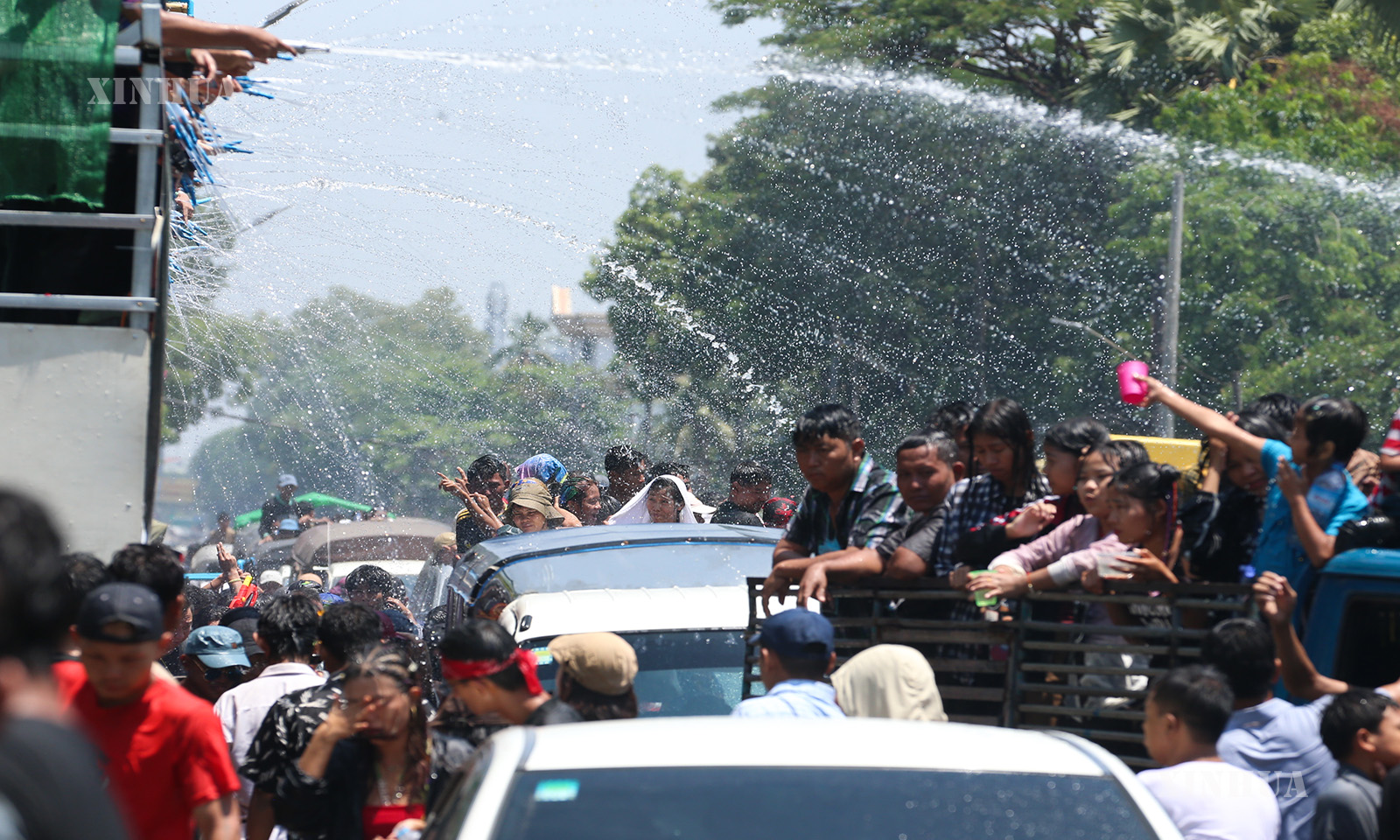 မြန်မာနိုင်ငံ ရန်ကုန်မြို့ ကမ္ဘာအေးဘုရားလမ်း အင်းလျားကန်ဘောင်တွင် ၂၀၂၆ ခုနှစ် ဧပြီ ၁၅ ရက် သင်္ကြန်အကြတ်နေ့ မြင်ကွင်းများကို ဖော်ပြအပ်ပါသည်။ (Xinhua)