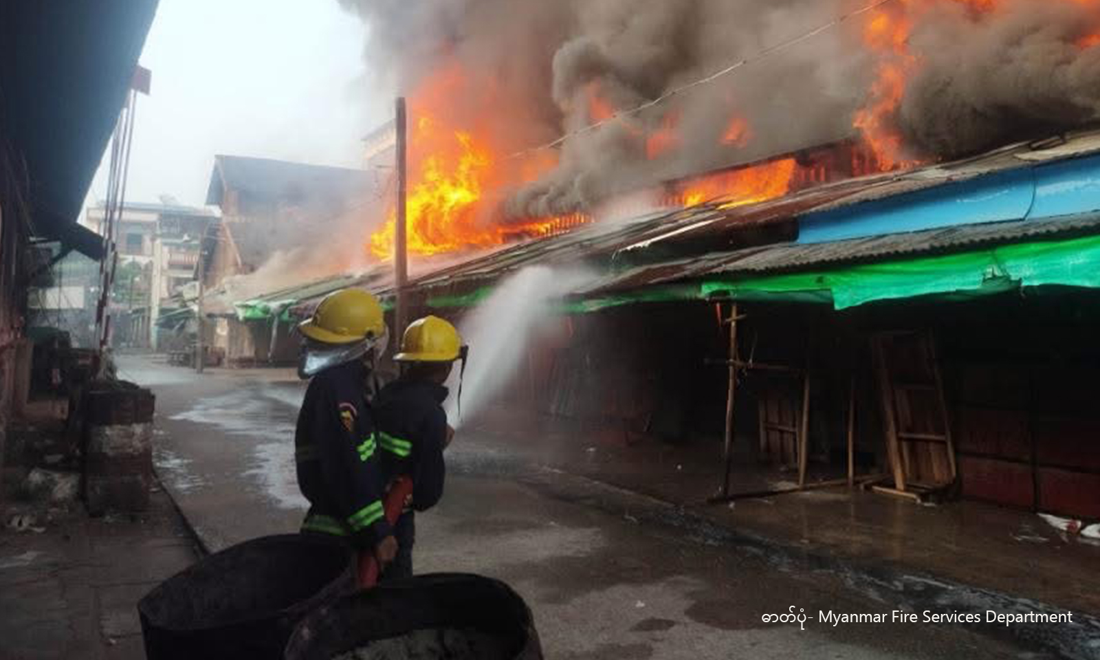 မြန်မာနိုင်ငံ၊ ဧရာဝတီတိုင်းဒေသကြီး၊ ဓနုဖြူမြို့နယ်ရှိ ဈေးတစ်ခုတွင် မီးလောင်မှုဖြစ်ပွားပြီး ဆိုင်ခန်းပေါင်း ၂၀၀ ကျော် ပျက်စီးဆုံးရှုံးခဲ့