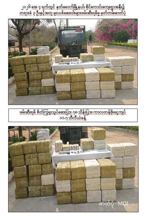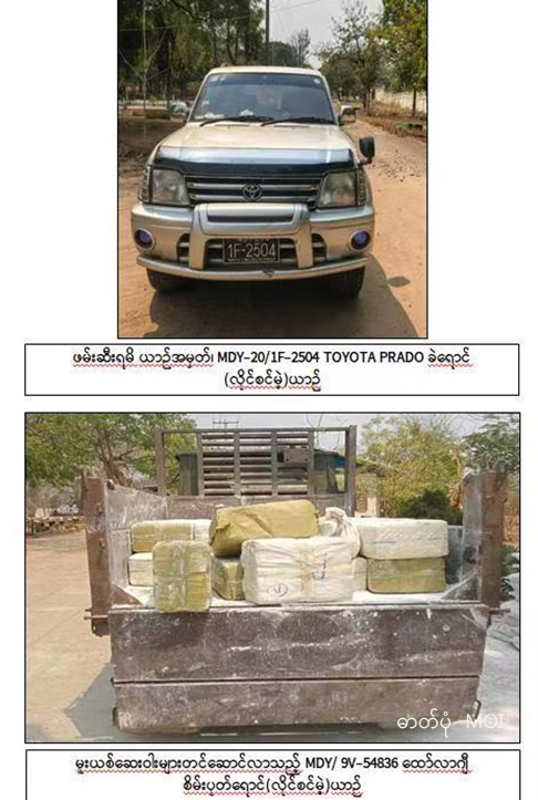 စုံစမ်းစစ်ဆေးမှုများအရ အဆိုပါ မူးယစ်ဆေးဝါးများကို ရှမ်းပြည်နယ်မှ ရခိုင်ပြည်နယ်၊ အမ်းမြို့သို့ သယ်ဆောင်ရန် ရည်ရွယ်ထားကြောင်း သိရသည်။