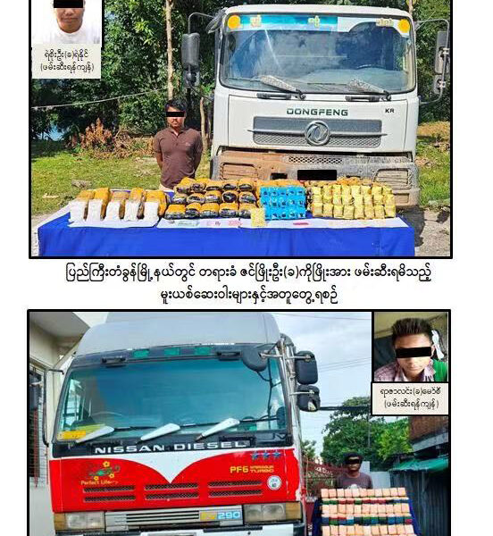 နေပြည်တော်၊ အောက်တိုဘာ ၃၁ ရက် (ဆင်ဟွာ) မြန်မာနိုင်ငံ ရှမ်းပြည်နယ် ပင်လောင်းမြို့နယ်နှင့် မန္တလေးတိုင်းဒေသကြီး ပြည်ကြီးတံခွန်မြို့နယ်တို့တွင် ငွေကျပ် ၁ ဒသမ ၁ ဘီလီယံကျော်တန်ဖိုးရှိ မူးယစ်ဆေးဝါးများ ဖမ်းဆီးရမိခဲ့ကြောင်း အောက်တိုဘာ ၃၀ ရက်တွင်...