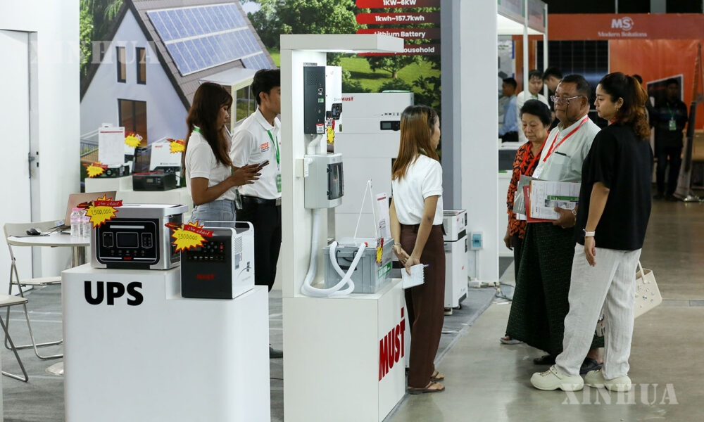 မြန်မာနိုင်ငံ ရန်ကုန်မြို့ရှိ အရောင်းပြပွဲ ဆိုင်ခန်းများရှိ တောက်ပသောအလင်းရောင်အောက်တွင် စီတန်းထားသည့် ဆိုလာပြားများ၊ အင်ဗာတာများနှင့် အာမခံချက်ရှိသော စွမ်းအင်သိုလှောင်သည့် စနစ်များက အလားအလာကောင်းများဖြင့် လင်းလက်တောက်ပလျက်ရှိကာ ယုံကြည်စိတ်ချရသော လျှပ်စစ်ဓာတ်အားကဏ္ဍရရှိရေးအတွက် မြန်မာနိုင်ငံက ရှာဖွေဖော်ဆောင်ရာ၌ တရုတ်နိုင်ငံ၏ အခန်းကဏ္ဍမှာ ထင်ဟပ်ပေါ်လွင်လျက်ရှိသည်။